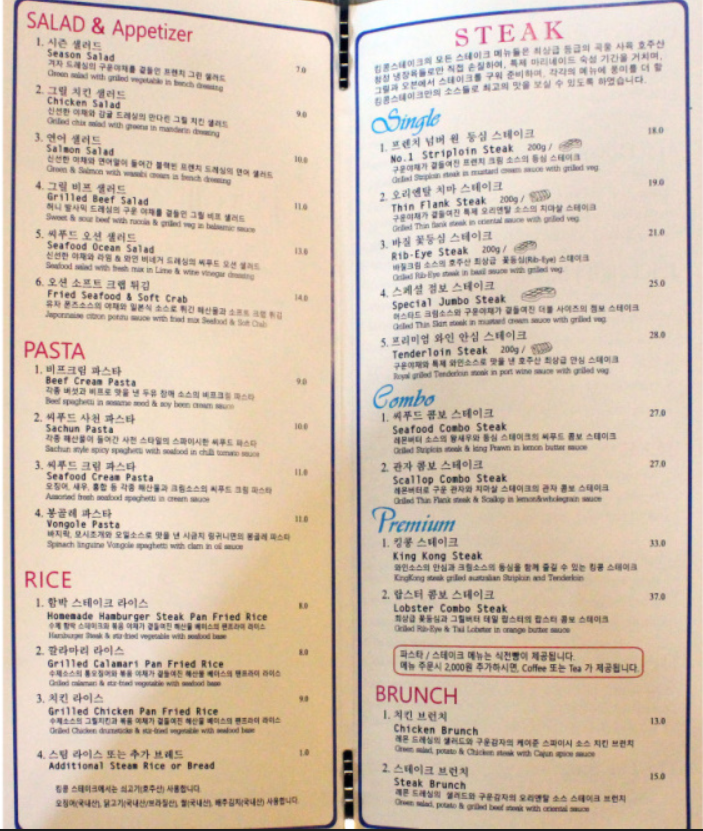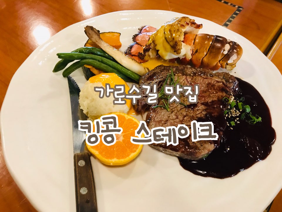 원래는 내가 좋아하는 탕수육 맛집에 가려고 신사동 가로수길에 간 거였는데, 주일 휴무라는 가슴 아픈 소식을 듣게 되었다. 멘붕상태에 빠진 나는 다른 맛집이 있나 찾아보다가 지쳐서 그냥 바로 앞에 보이는 킹콩 스테이크 집에 들어가기로 했다.