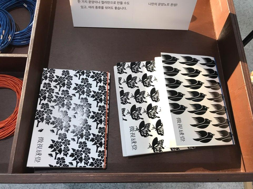 각자 취향대로 문양과 컬러를 선택하고 개성을 살린 본인만의 노트 한 권을 만드는 체험.
