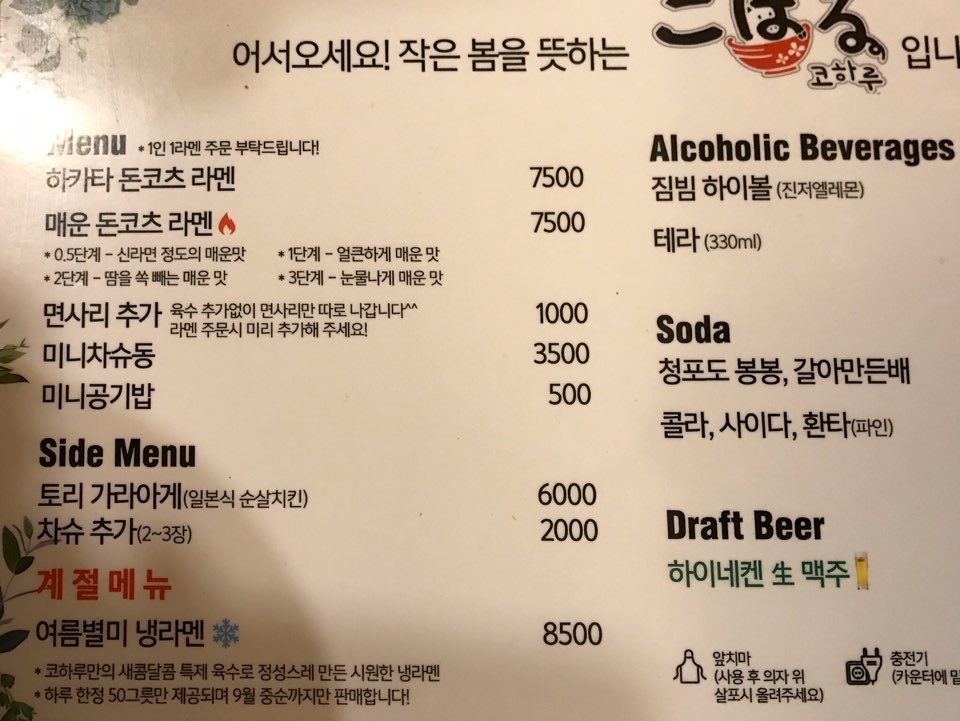 저녁이라 춥기도 해서 따뜻한 국물이 있는 라멘을 먹기로 결정하고 코하루로 고고!!