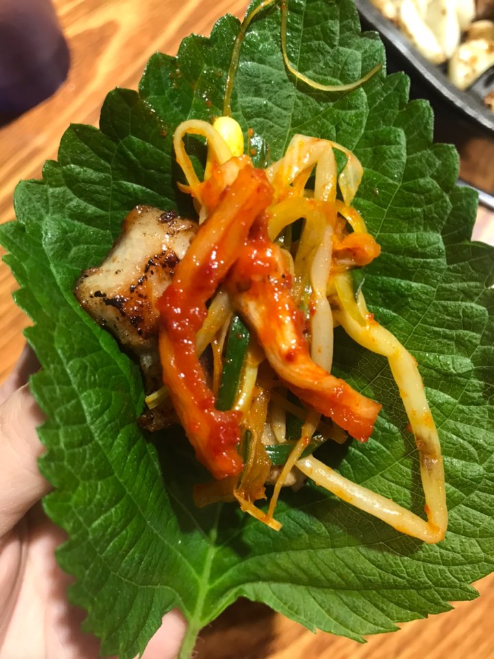 당연히 한국사람이라면 이렇게 쌈을 싸서 먹어줍니다.