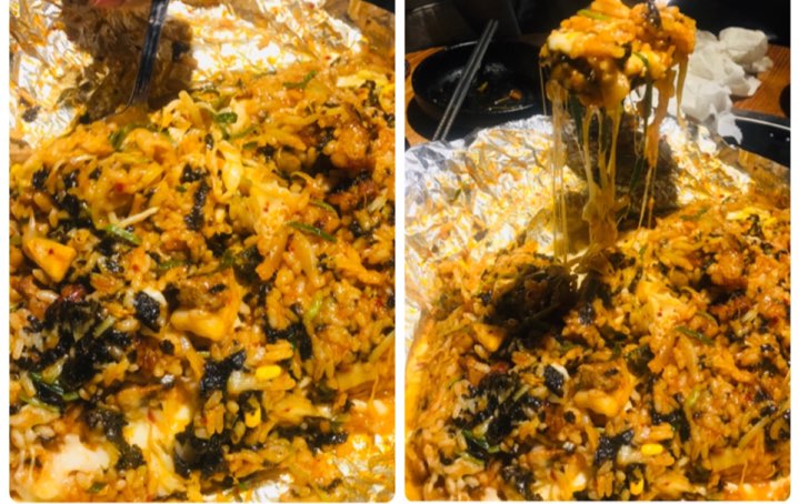 맛있는 치즈 볶음밥에 라면 국물 한입 호로록해주면 그냥 말 다했습니다. 정말 맛있어요.