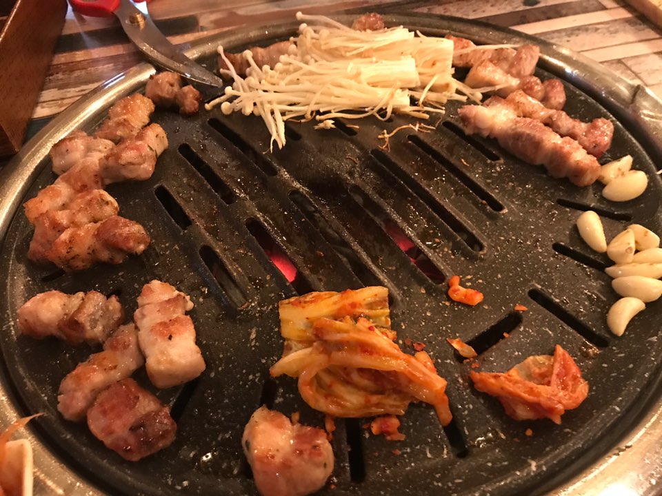 고기랑 함께 먹으면 맛있는 마늘도 같이 구워주고 김치도 같이 구워 먹었습니다.