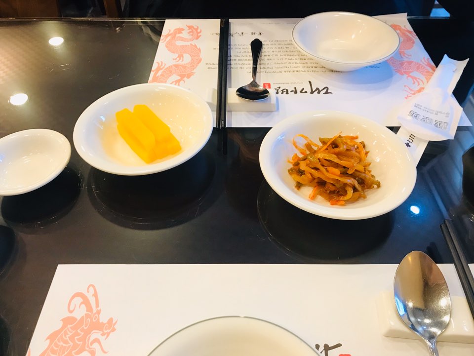 여느 중국집처럼 기본 반찬으로 단무지와 짜사이 무침이 나왔습니다.