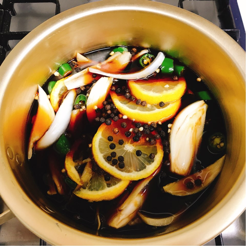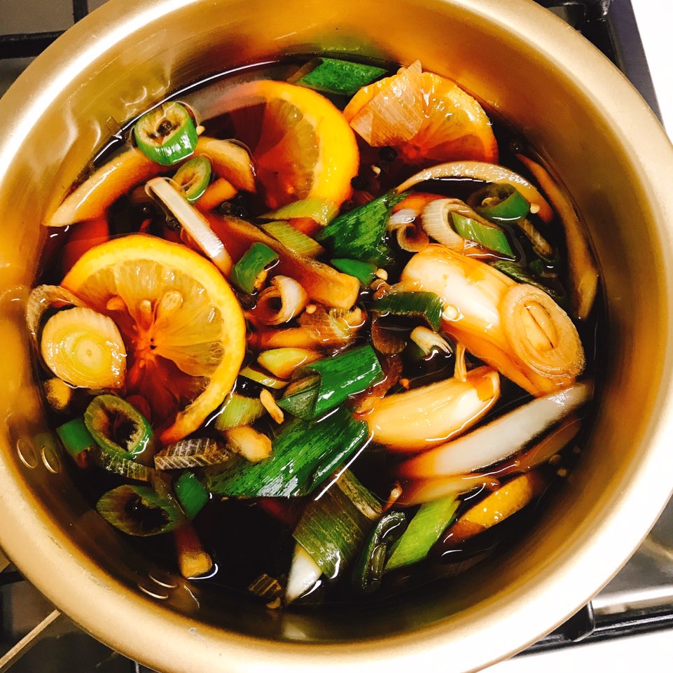 양파 한 개/ 레몬 1~2개/ 통후추 조금/ 대파 조금