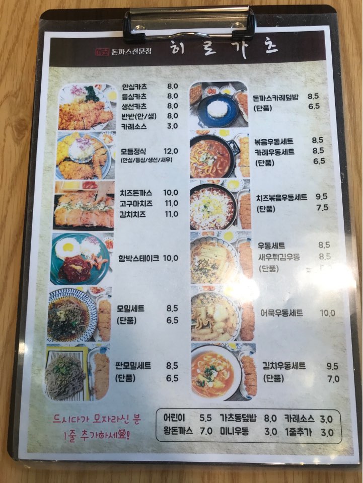 히로가츠의 메뉴판입니다.