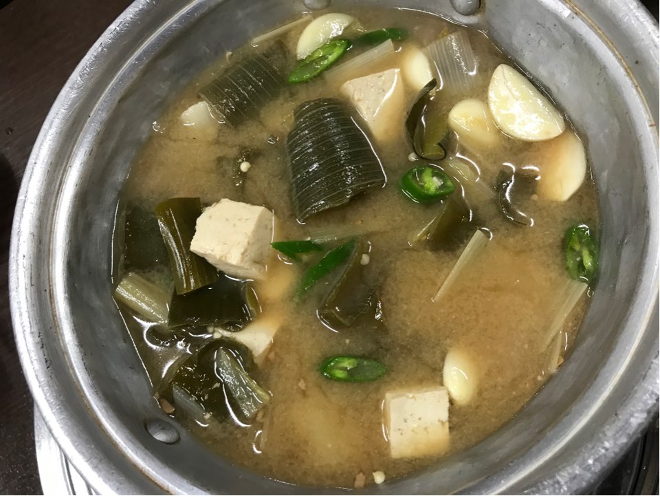 식사로 시킨 된장찌개가 나왔어요.