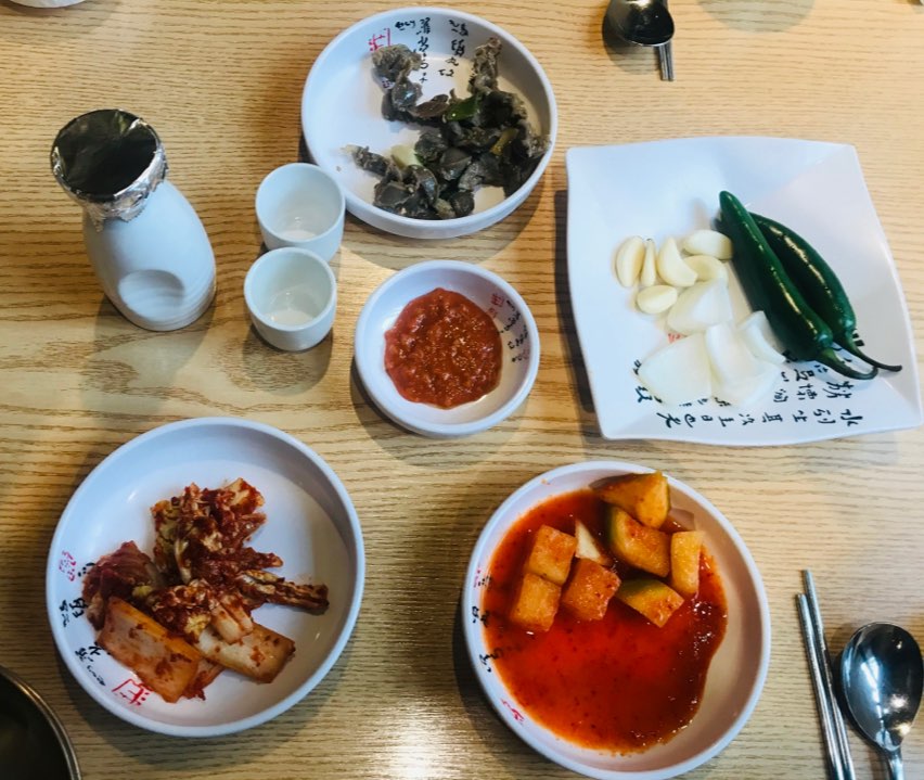 이렇게 기본 반찬들을 먼저 세팅해주는데,