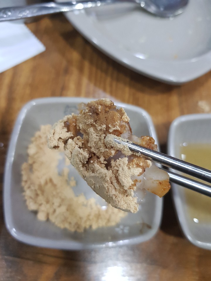여기는 신기하게 콩고물을 줘요.