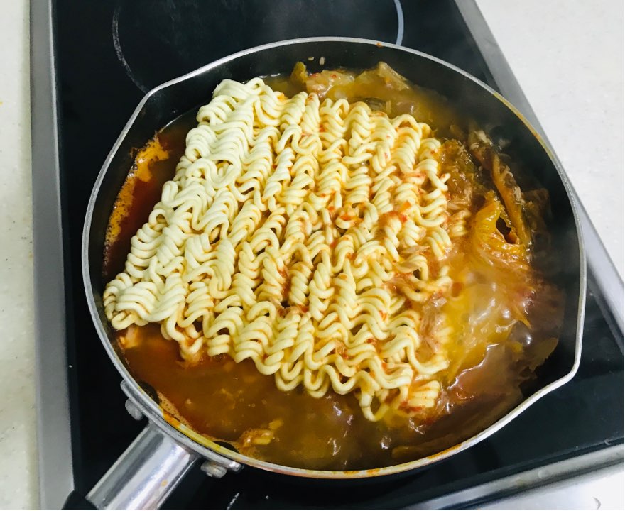 치킨값 내고 마무리는 김치라면으로 장식했네요.
