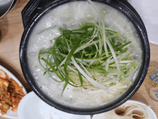 엄청나게 우려낸 뽀얀 육수에 파까지