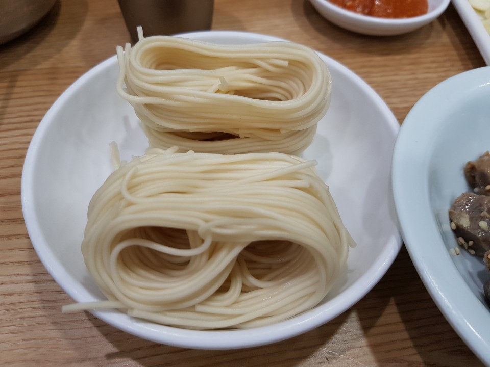 뜨거울 때 국수면을 바로 넣어줬어요.