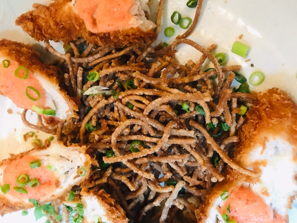 메밀소바 면을 튀긴 요리인 것 같아요.