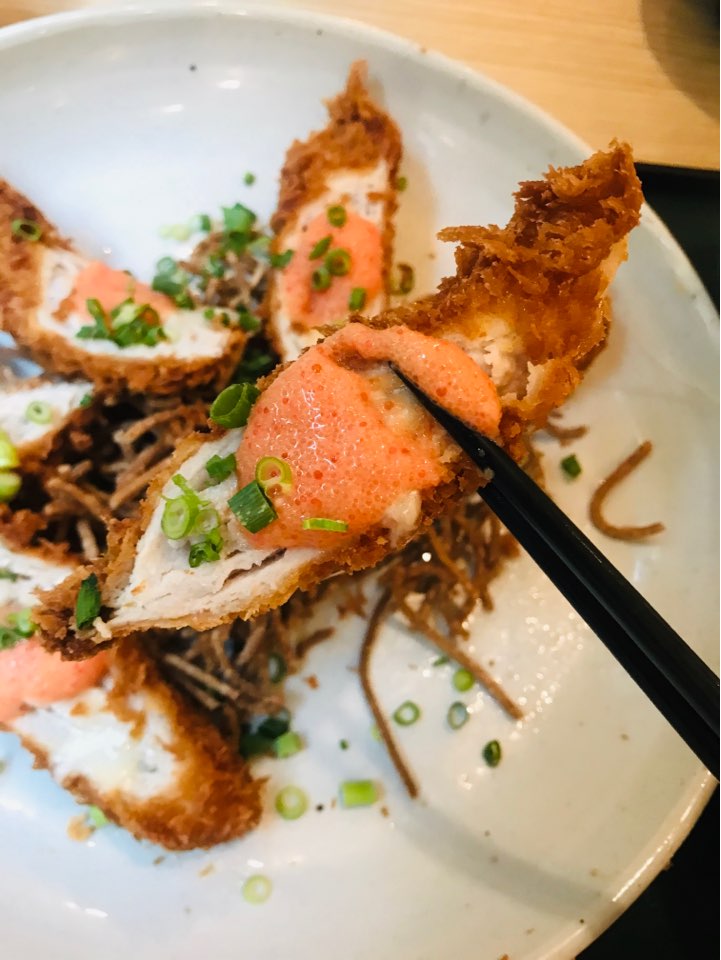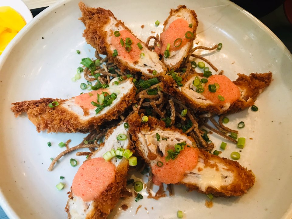 치즈롤 카츠 위에 명란소스를 올렸다고 하는데