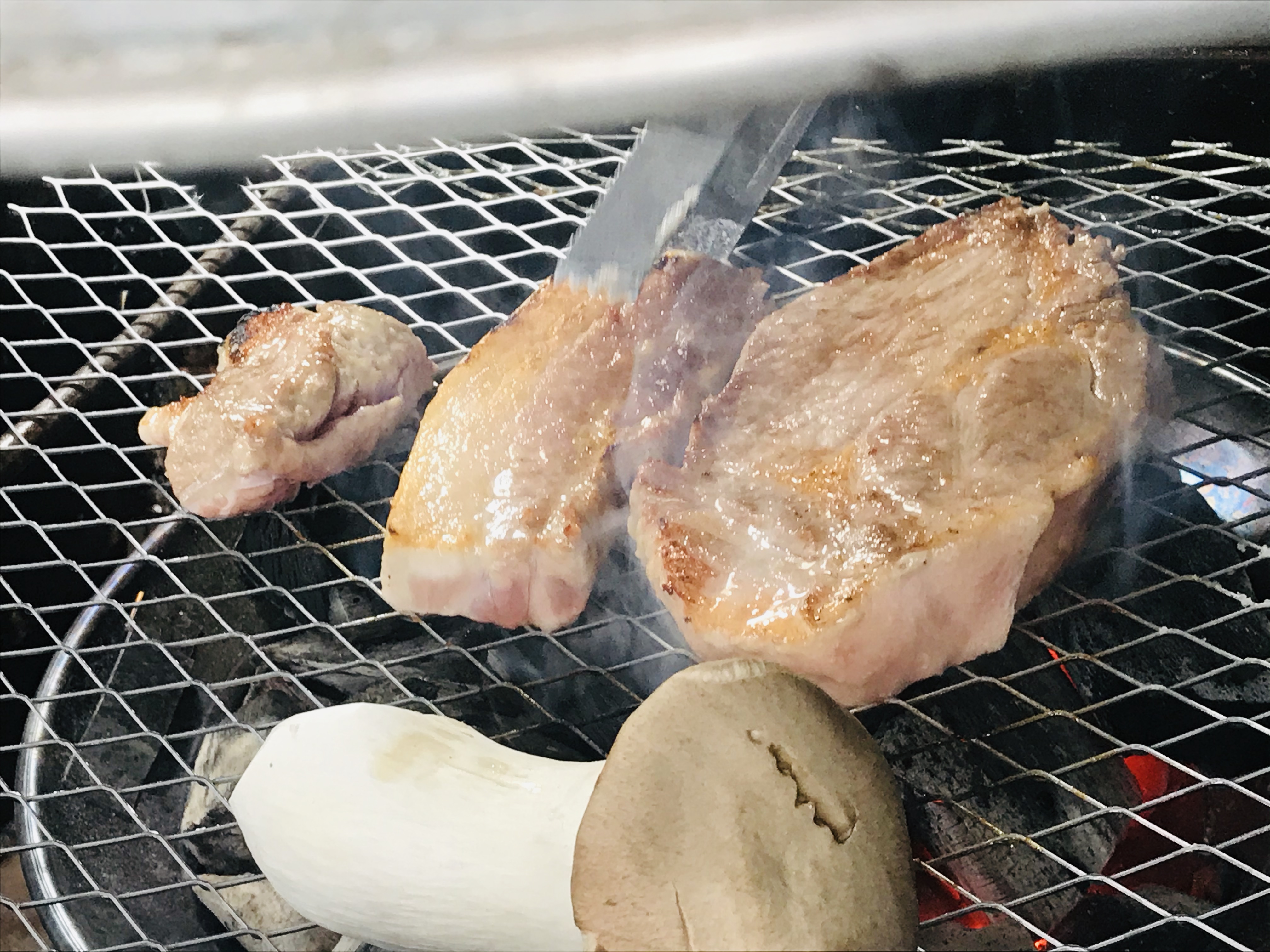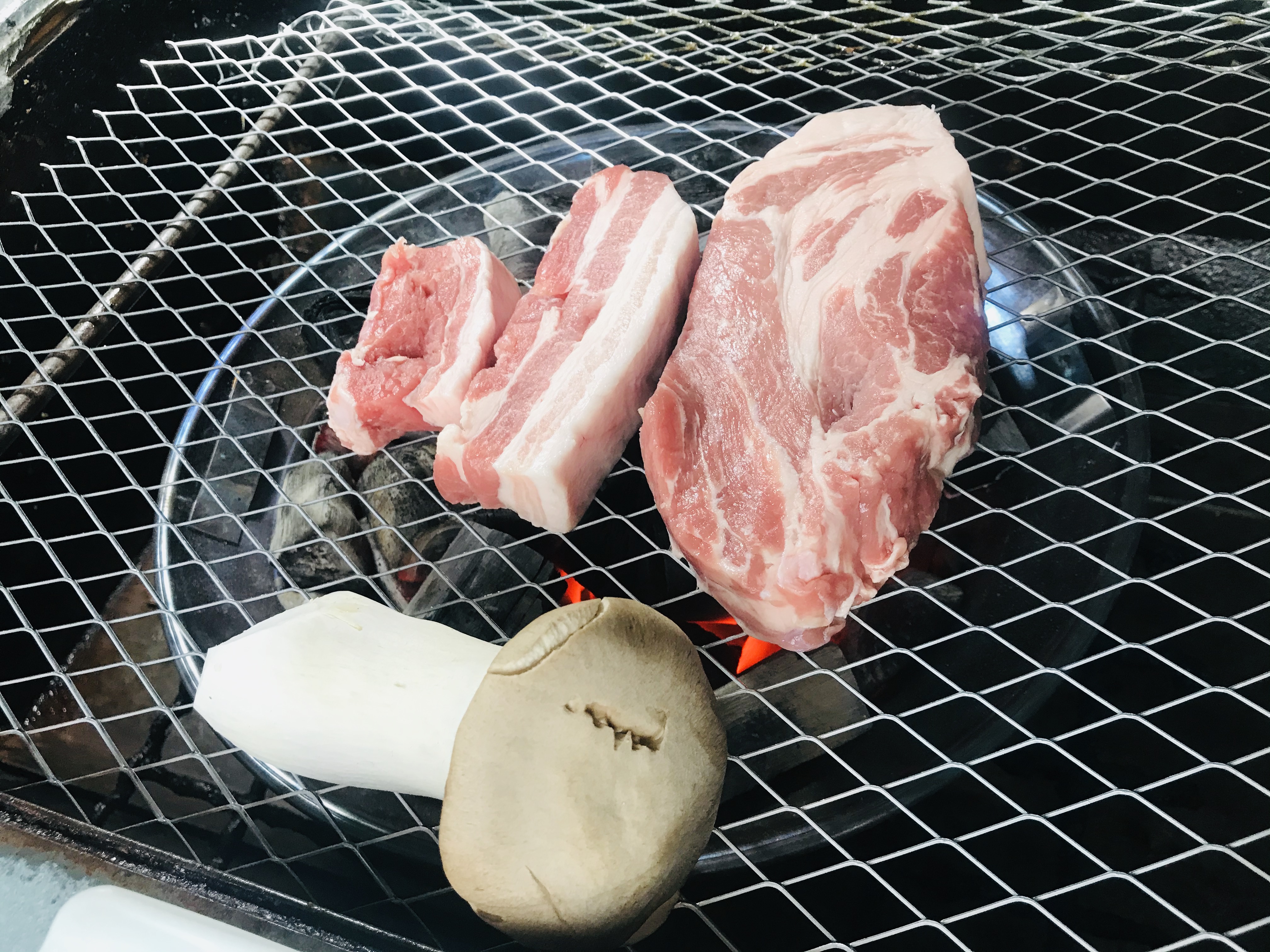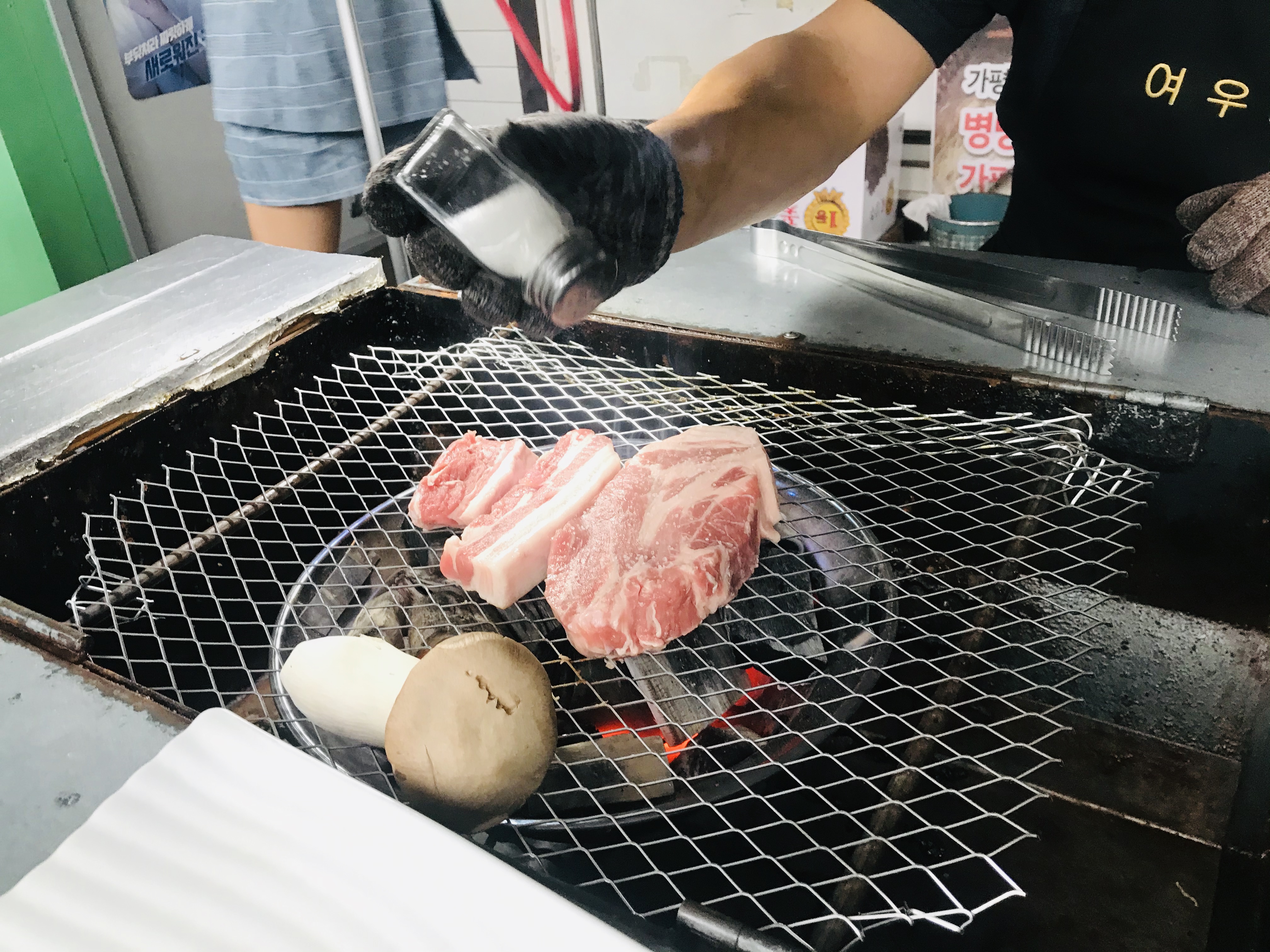 일단 고기와 버섯을 불판 위에 올려줍니다.