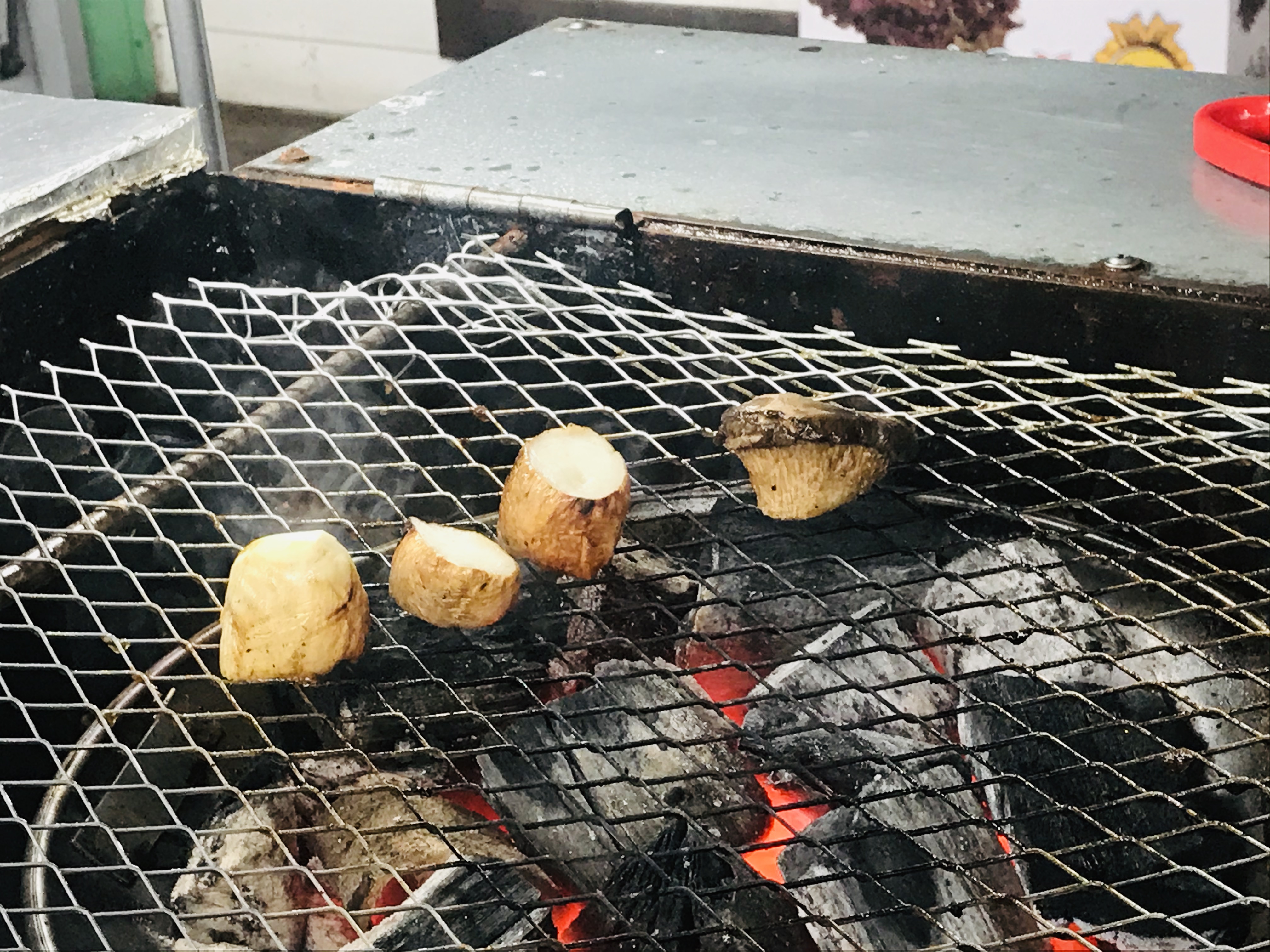 이렇게 버섯도 구워서 먼저 시식해보라고 주셨어요.