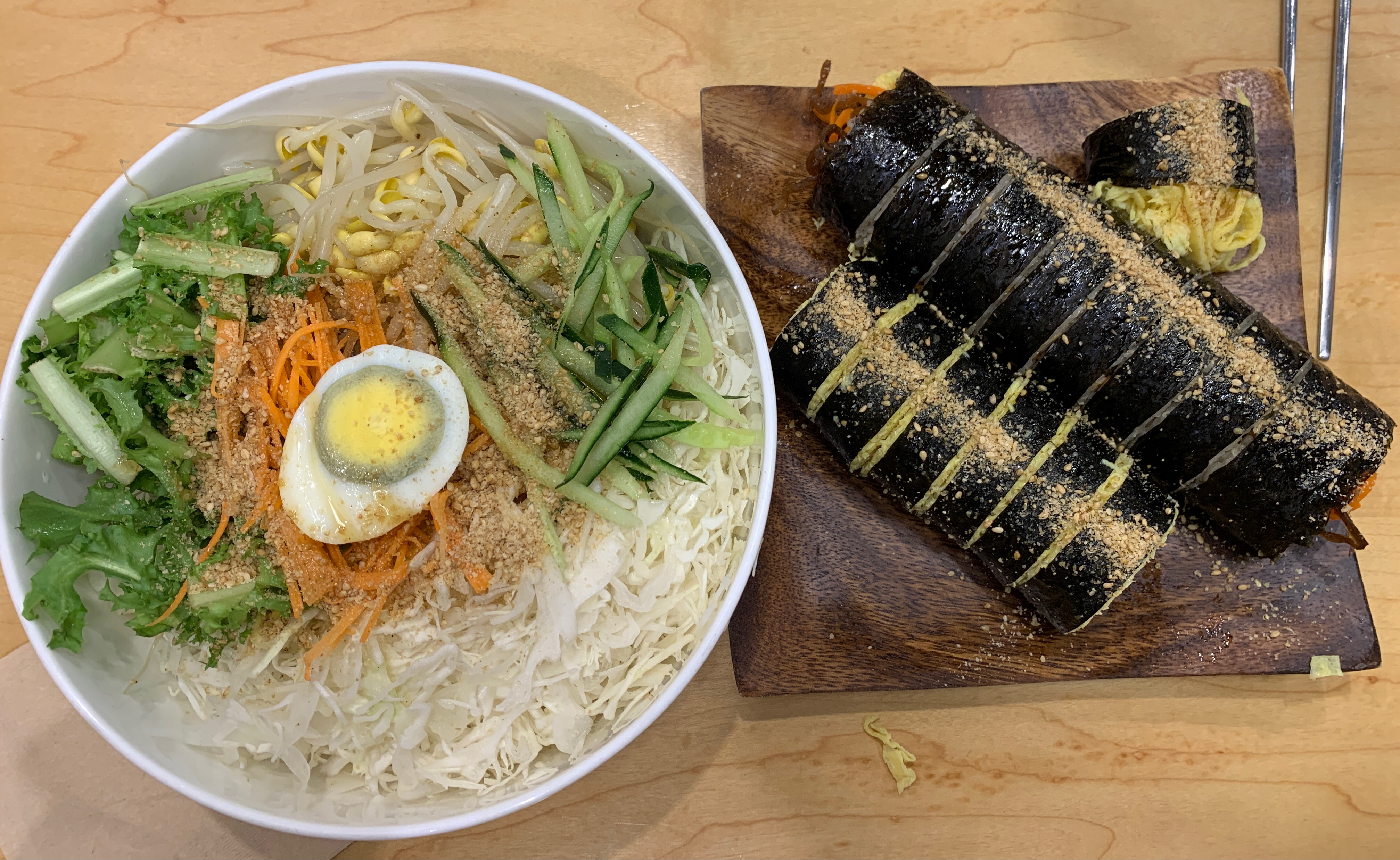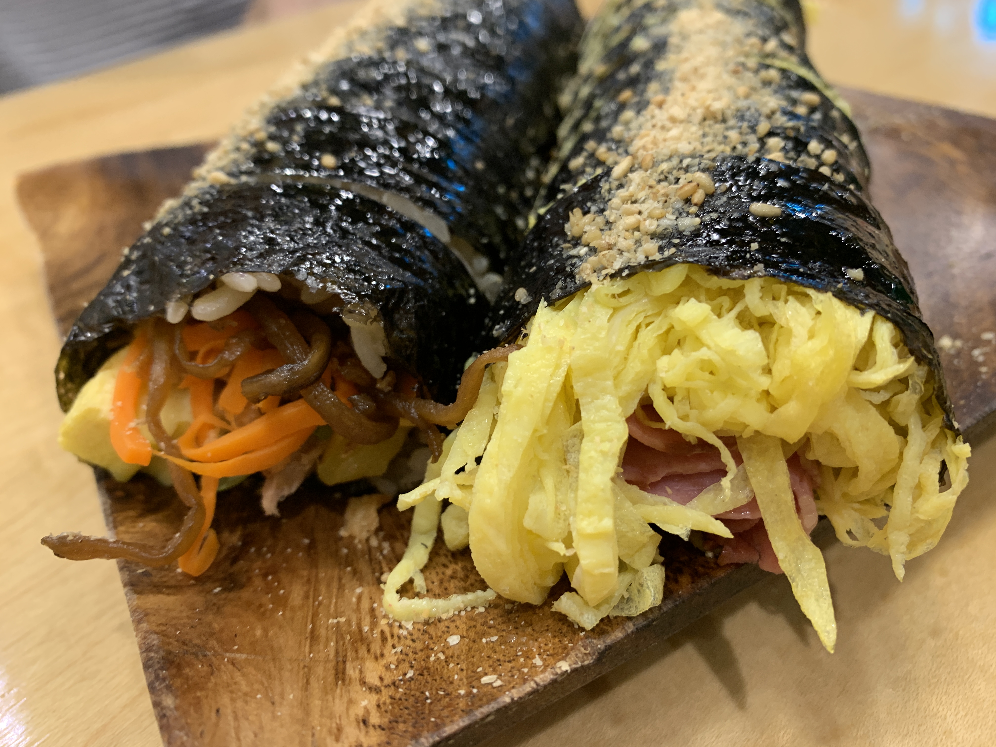 왼쪽은 참치김밥, 오른쪽이 키토 김밥입니다.