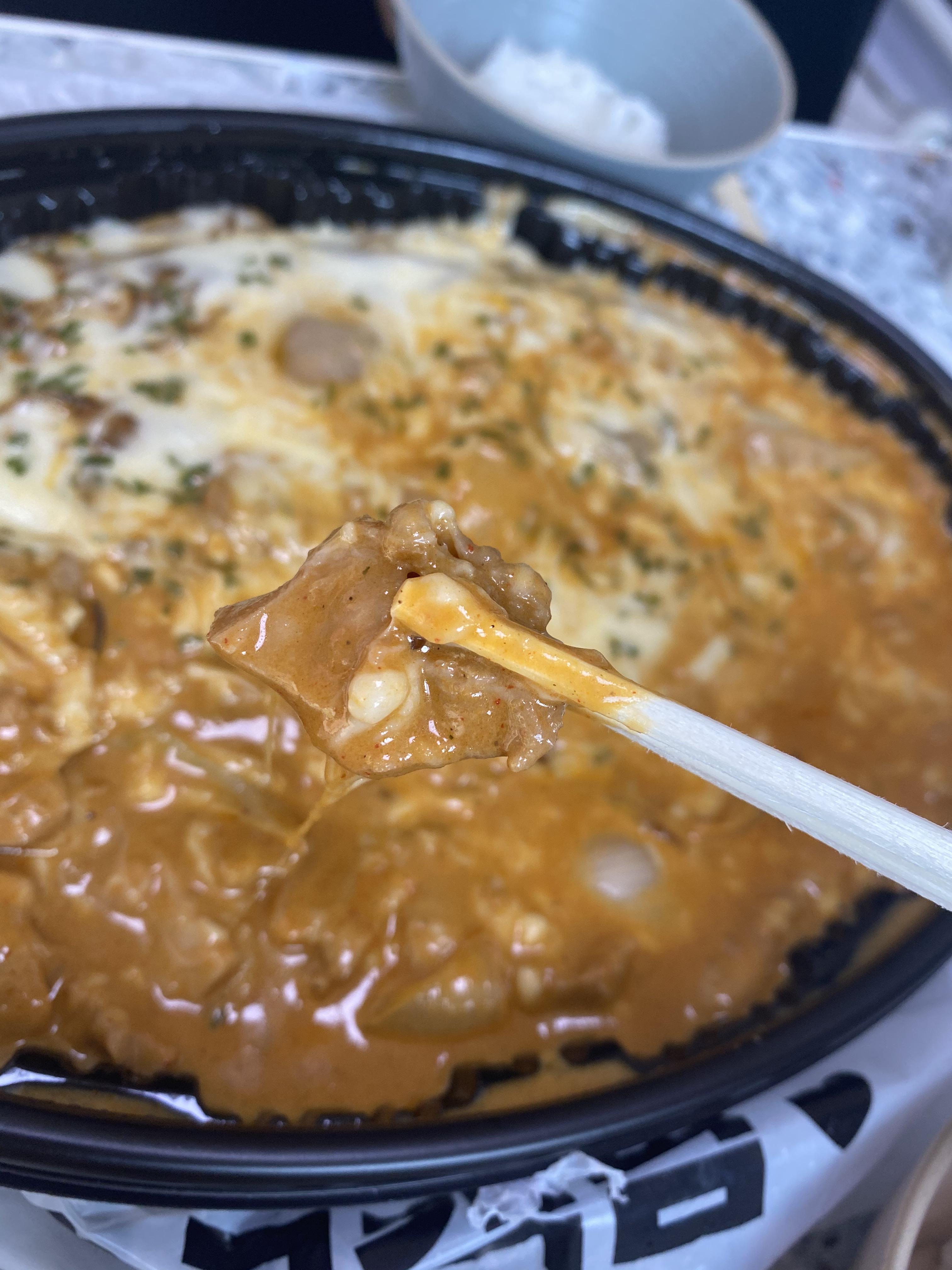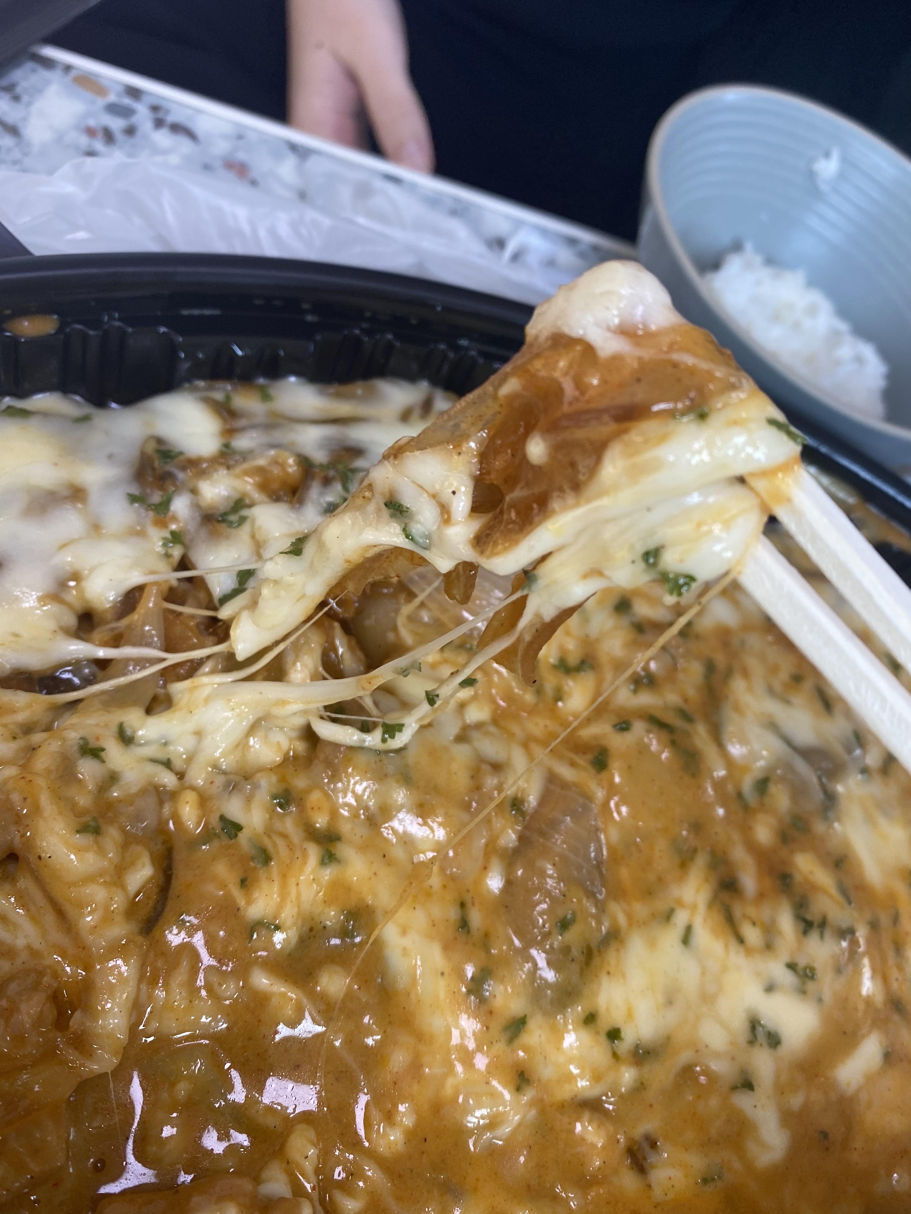 뭔가 치즈가 있으니, 매운맛과 조화도 굉장히 잘 어울릴 것 같고, 먹다 보니 약간 소스가 매워도 괜찮을 것 같다는 생각이 들었습니다!