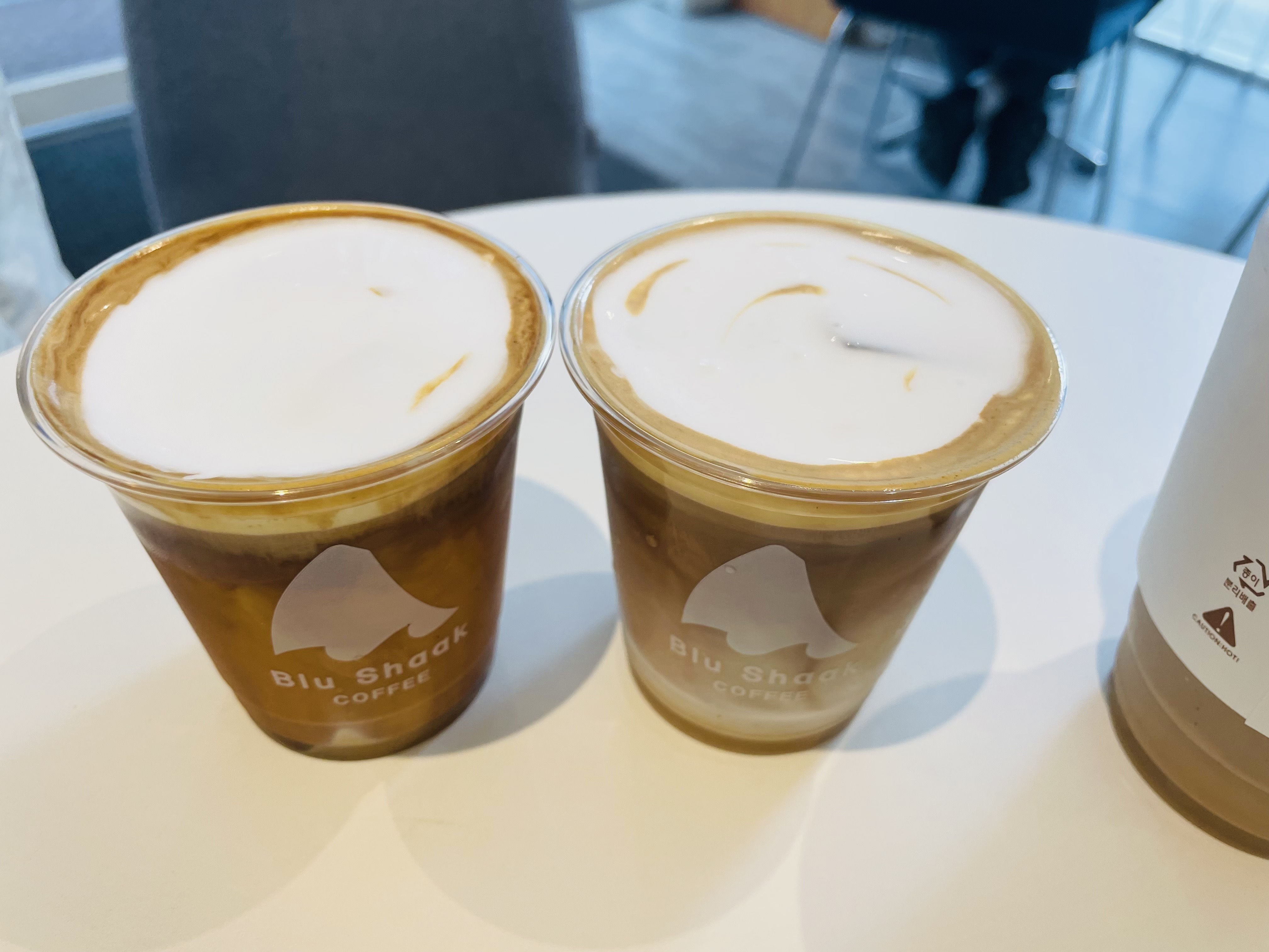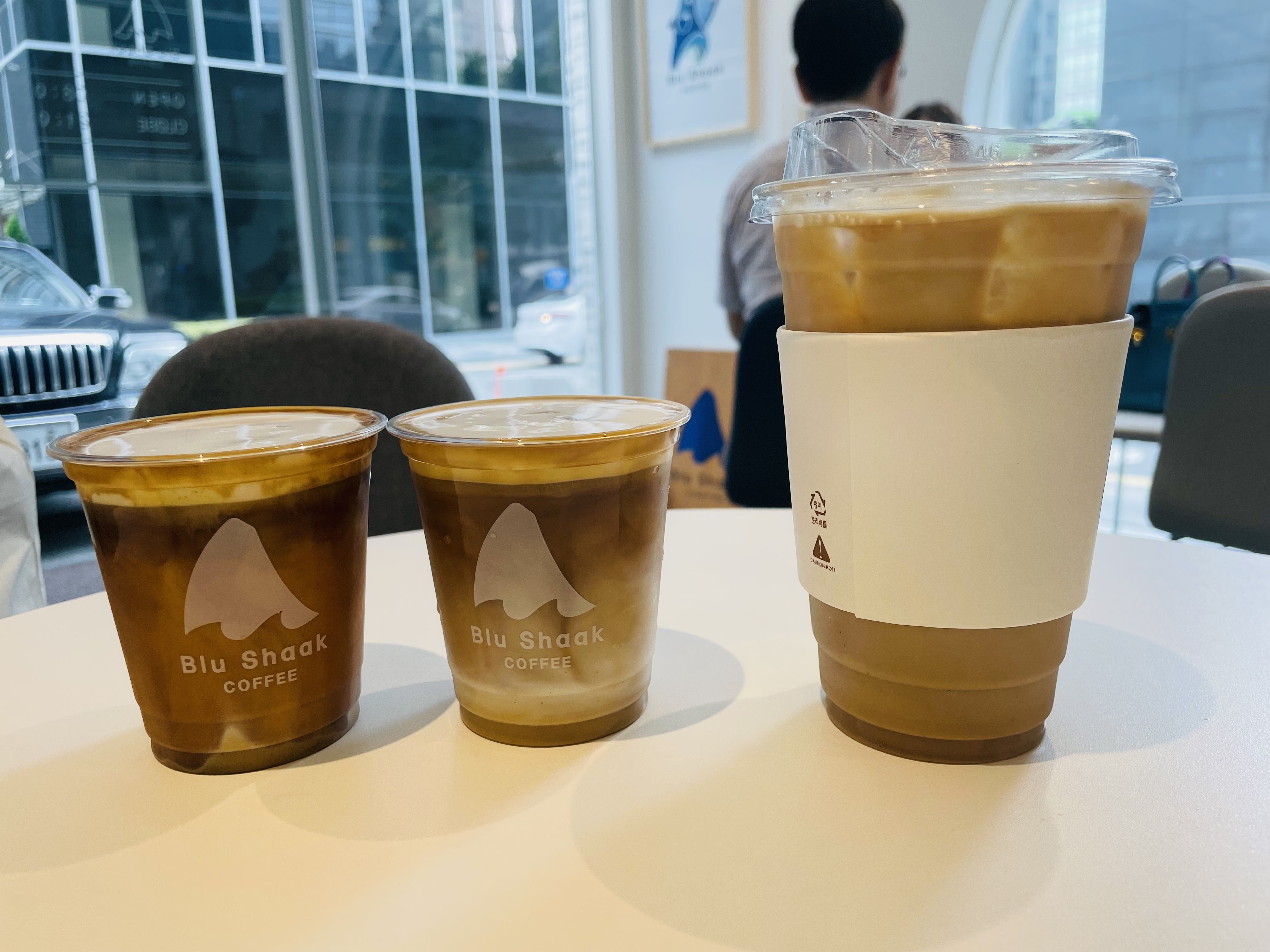 오른쪽 샥라떼가 종이컵 사이즈만큼 작은겁니다.