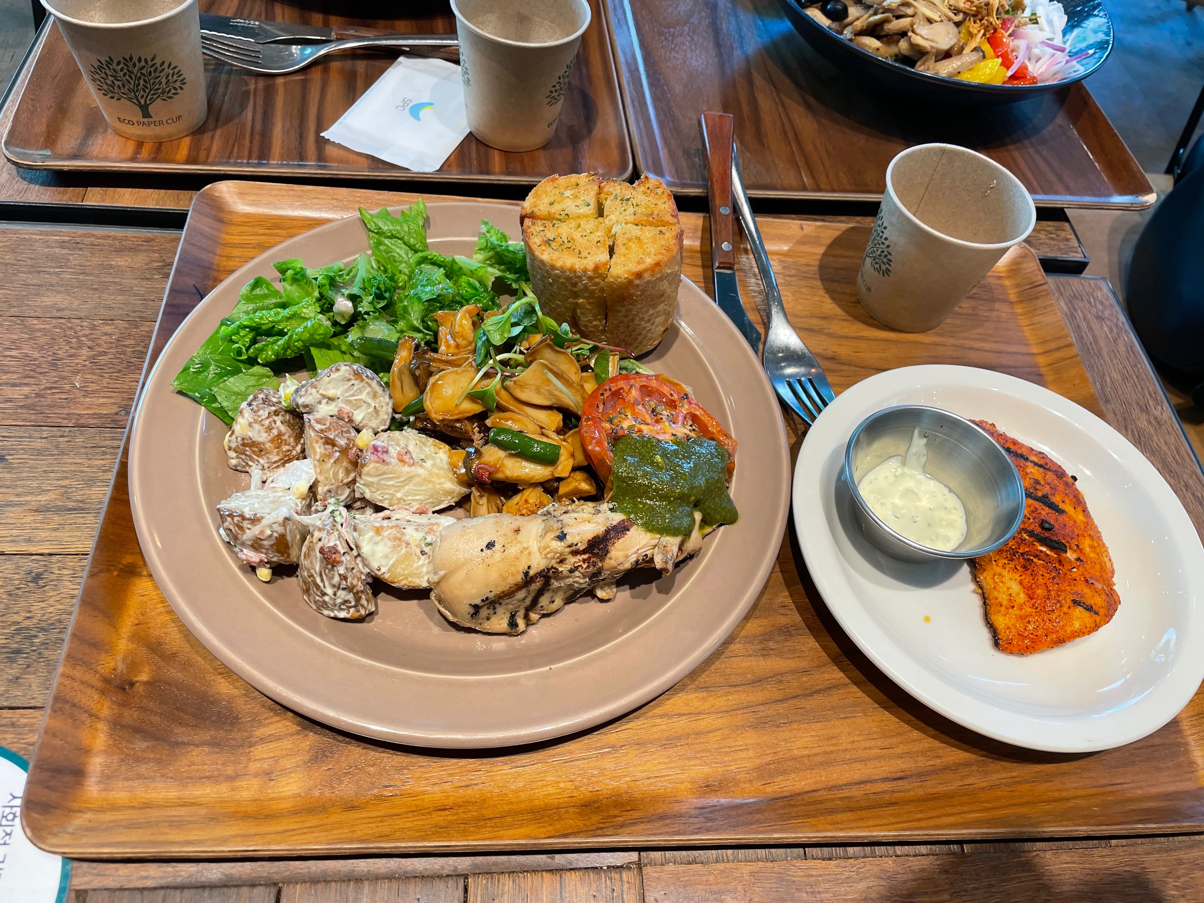 제 친구는 감자샐러드와 버섯을 추가했네요.