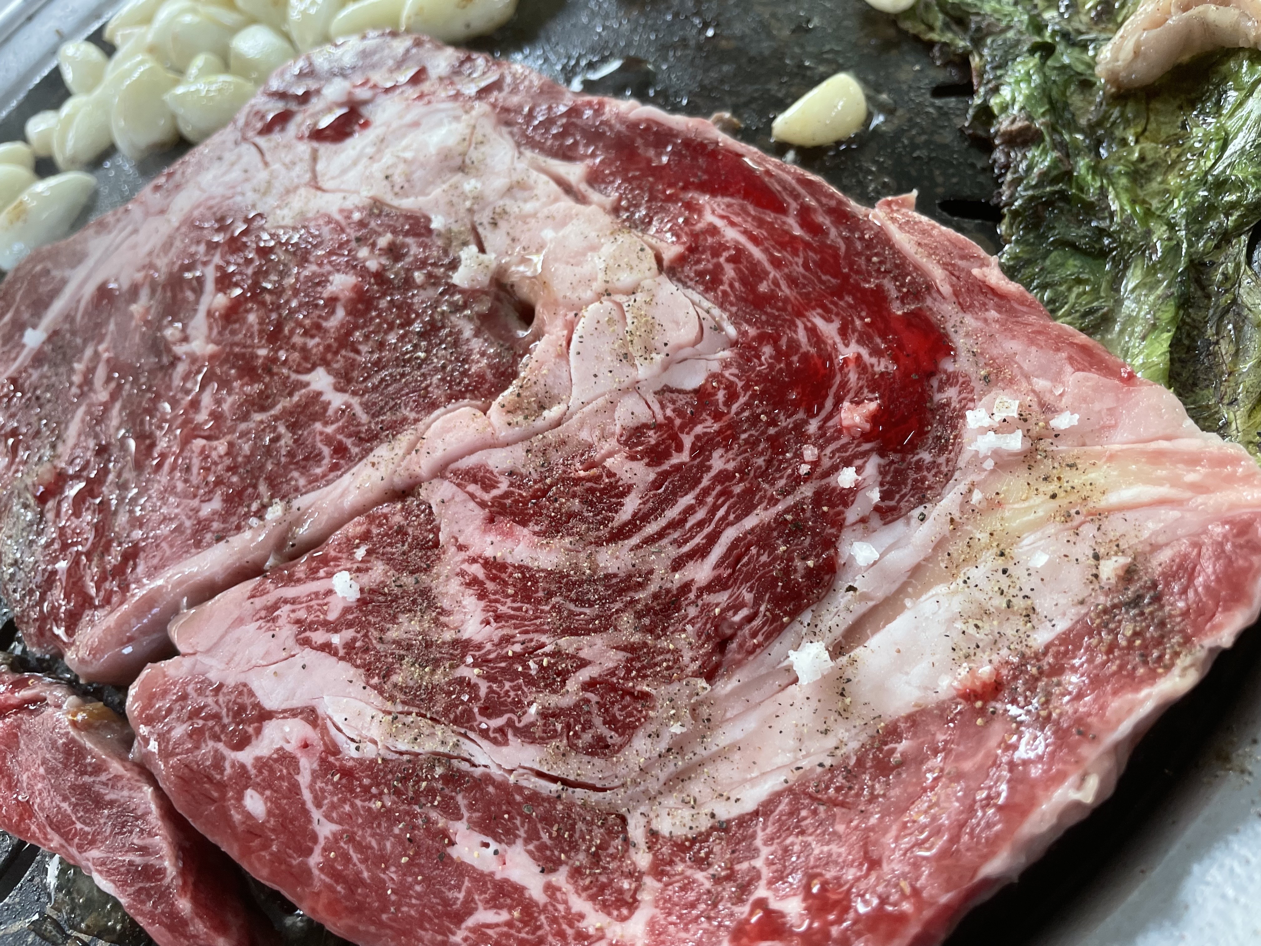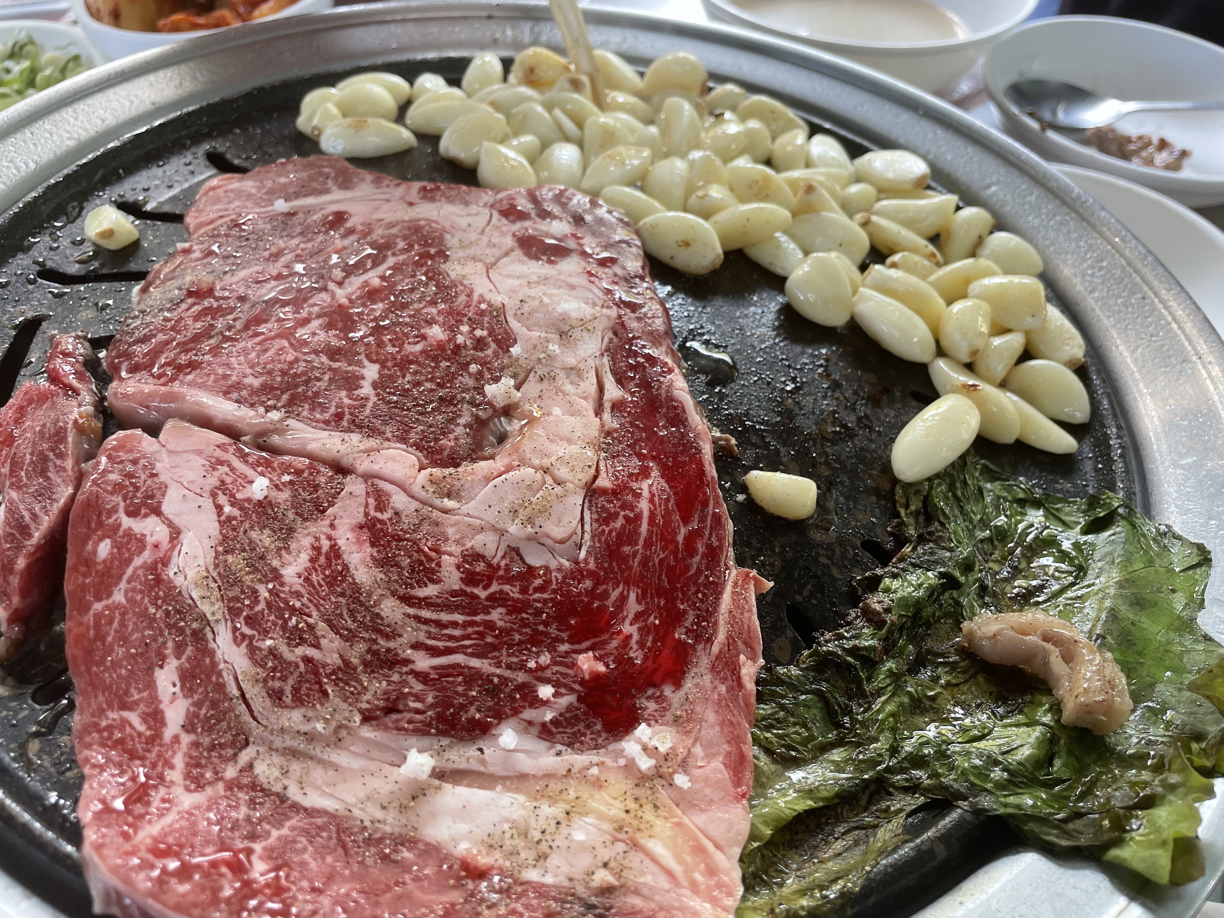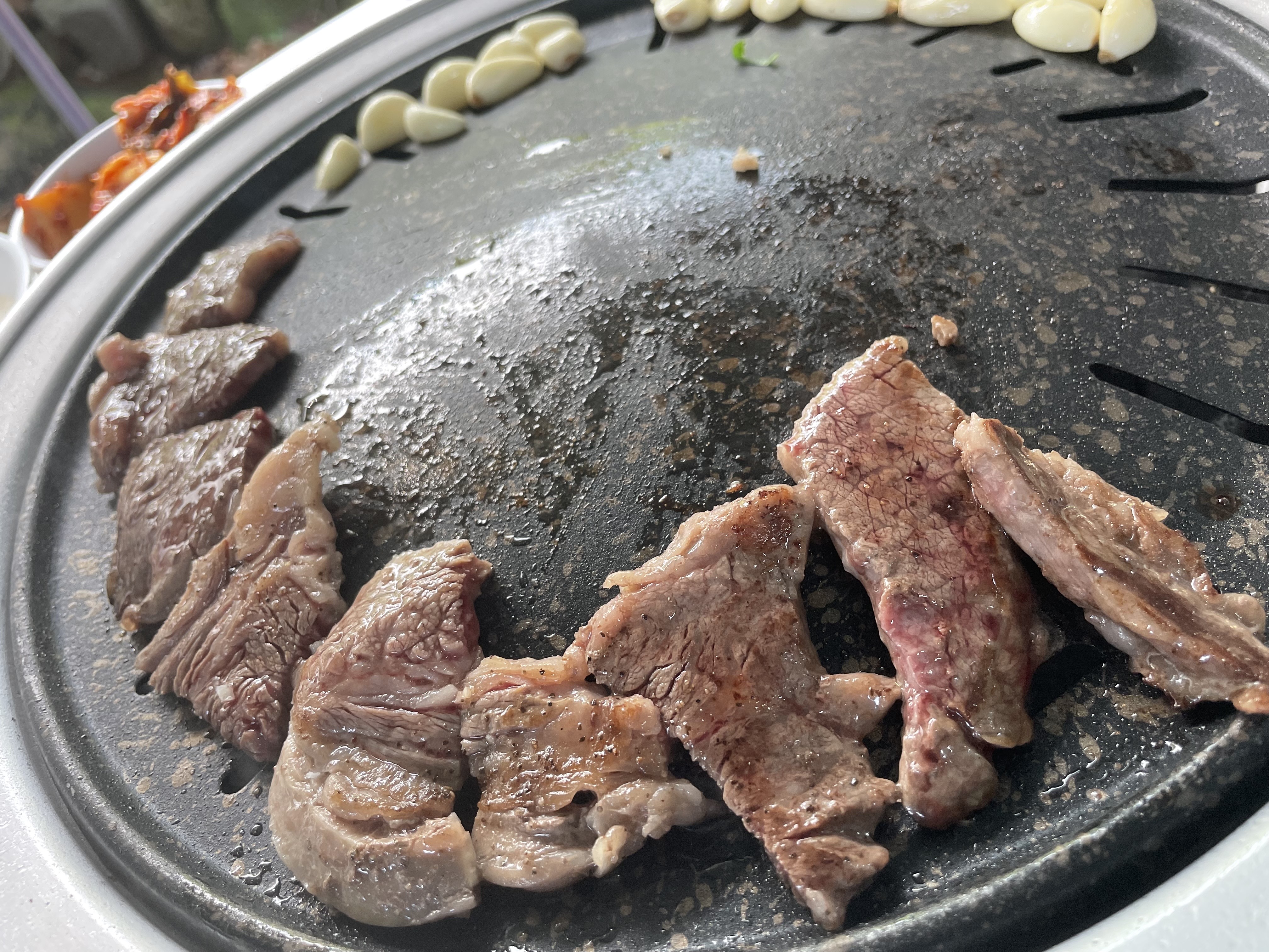 마늘 넣기 전에 처음 고기 굽는 단계였어요.