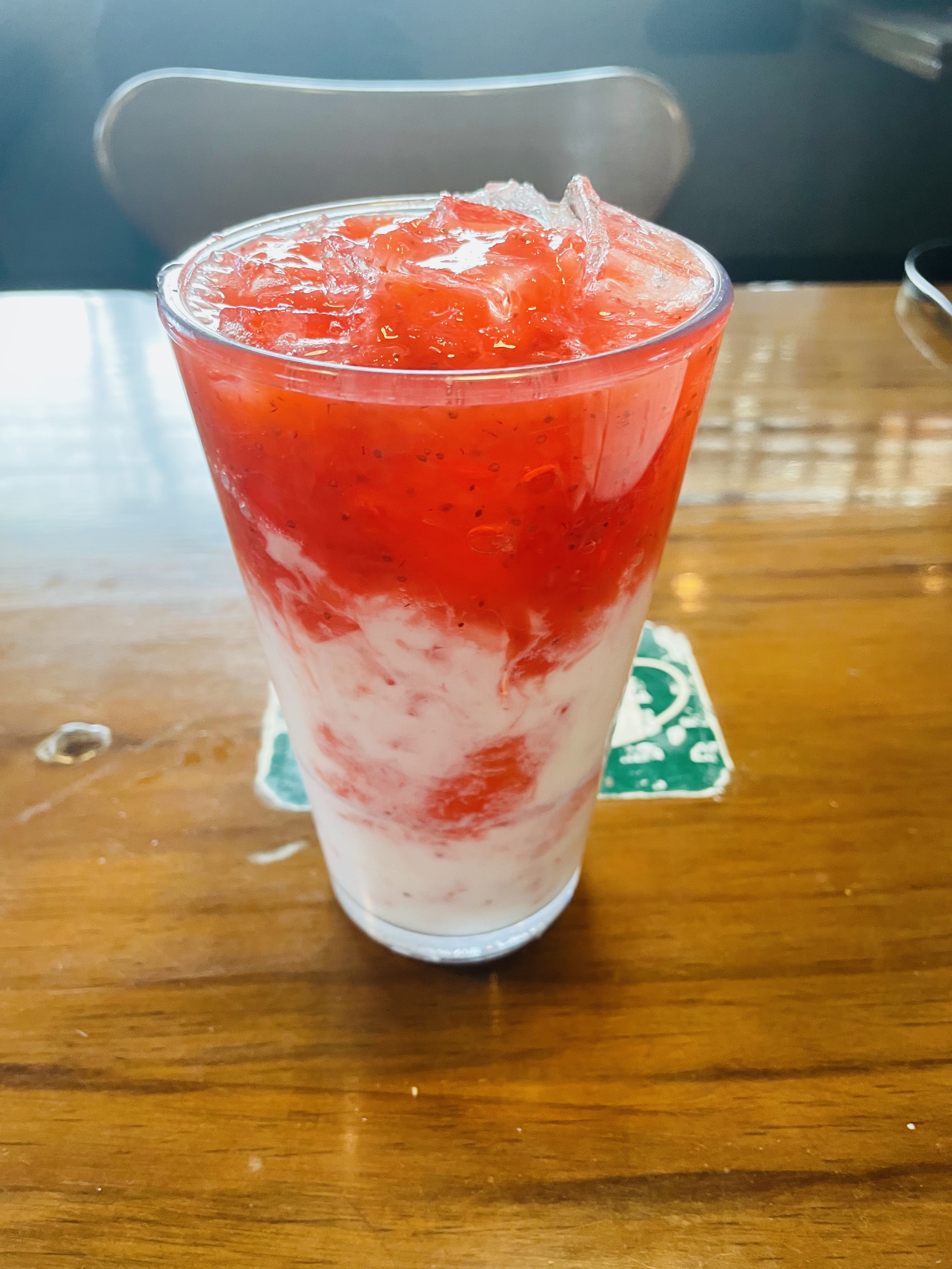 우유에 달달한 딸기청 섞어서 먹는 맛.
