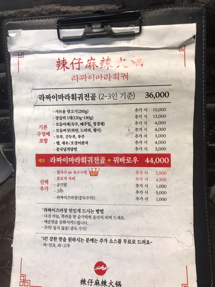 우리는 라짜이 마라 훠궈 전골+꿔바로우 세트를 먹었다. 가장 인기 메뉴라고 하니 먹어봐야지.