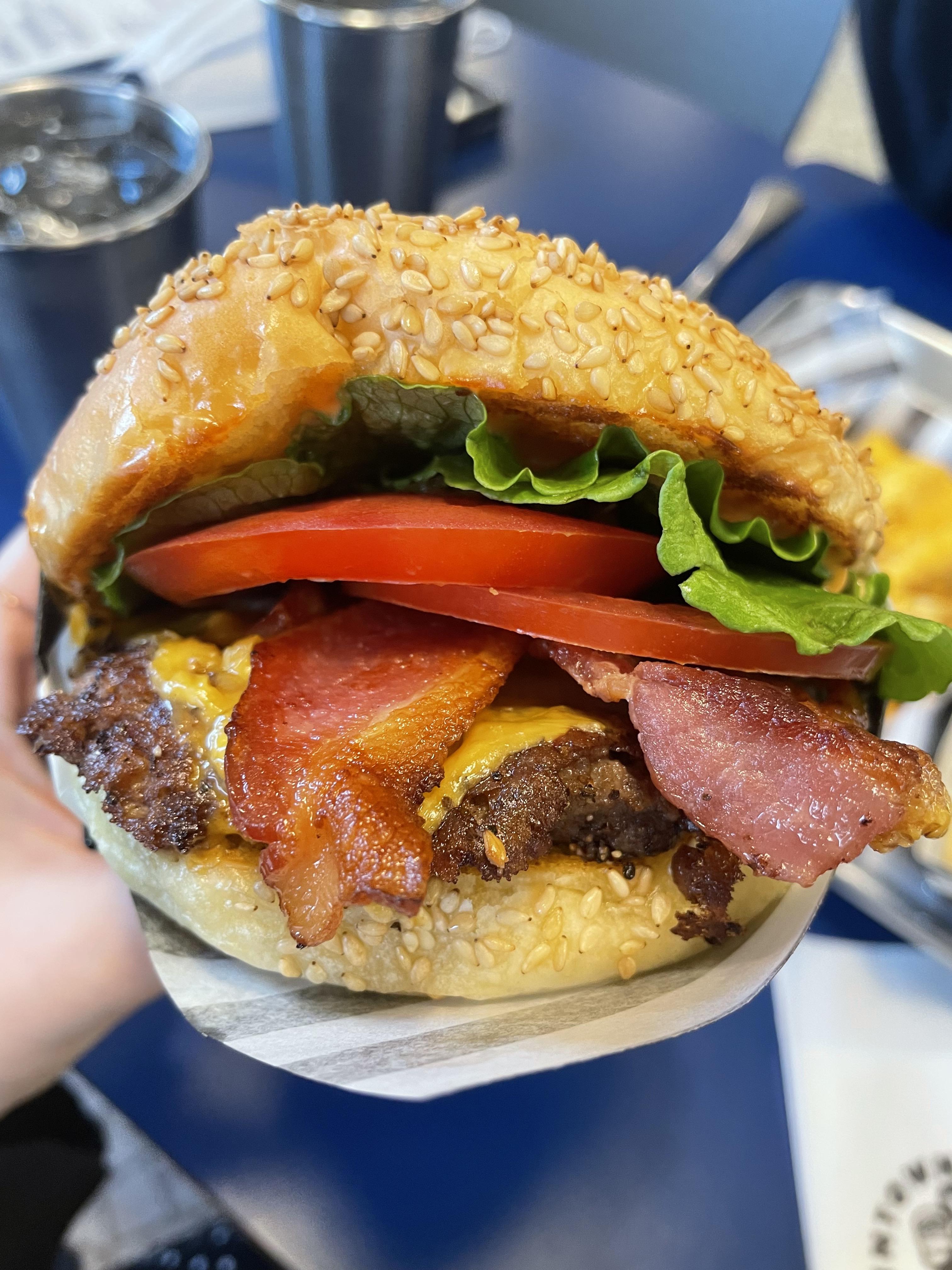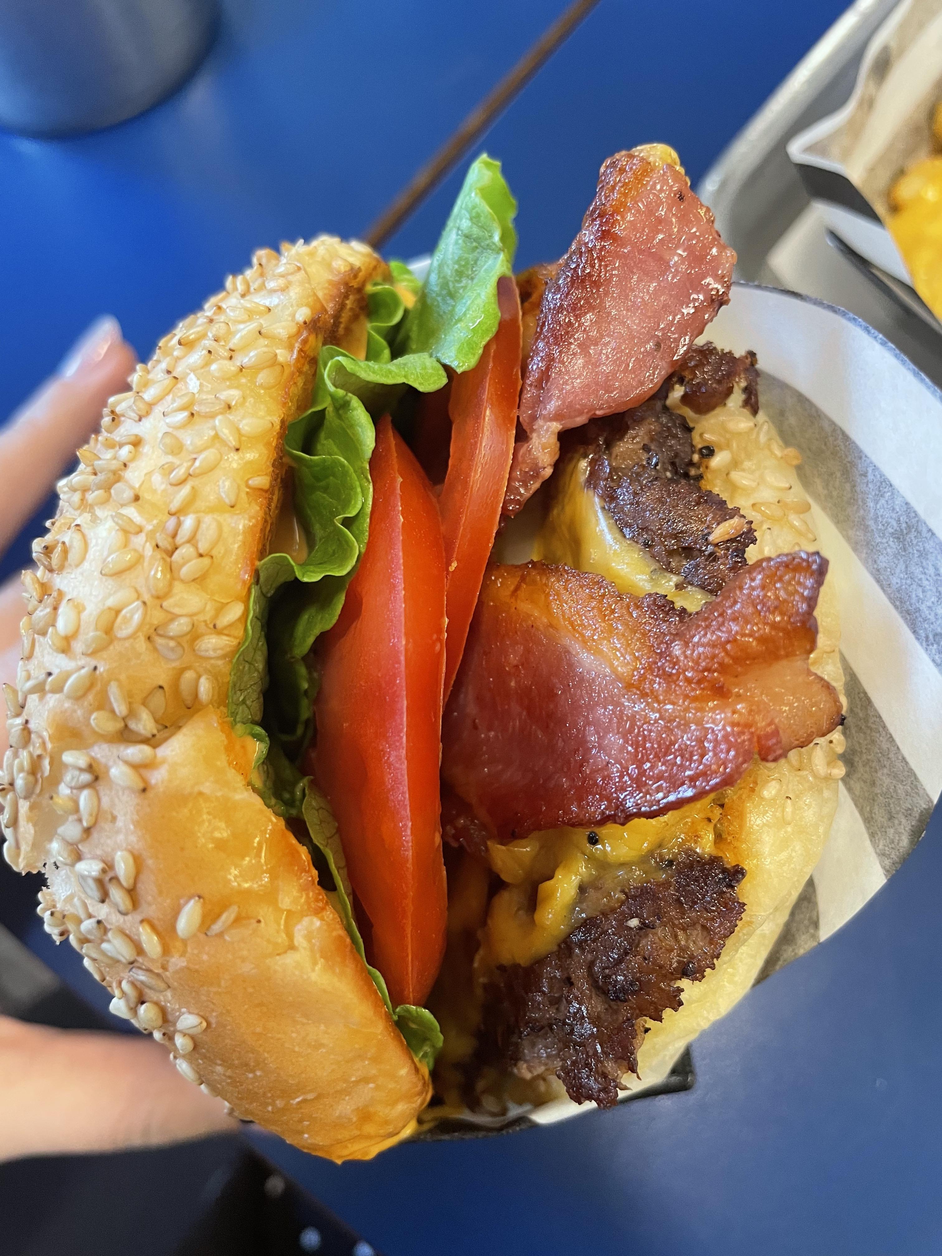 다된 햄버거에 토마토를 뿌린 느낌..?