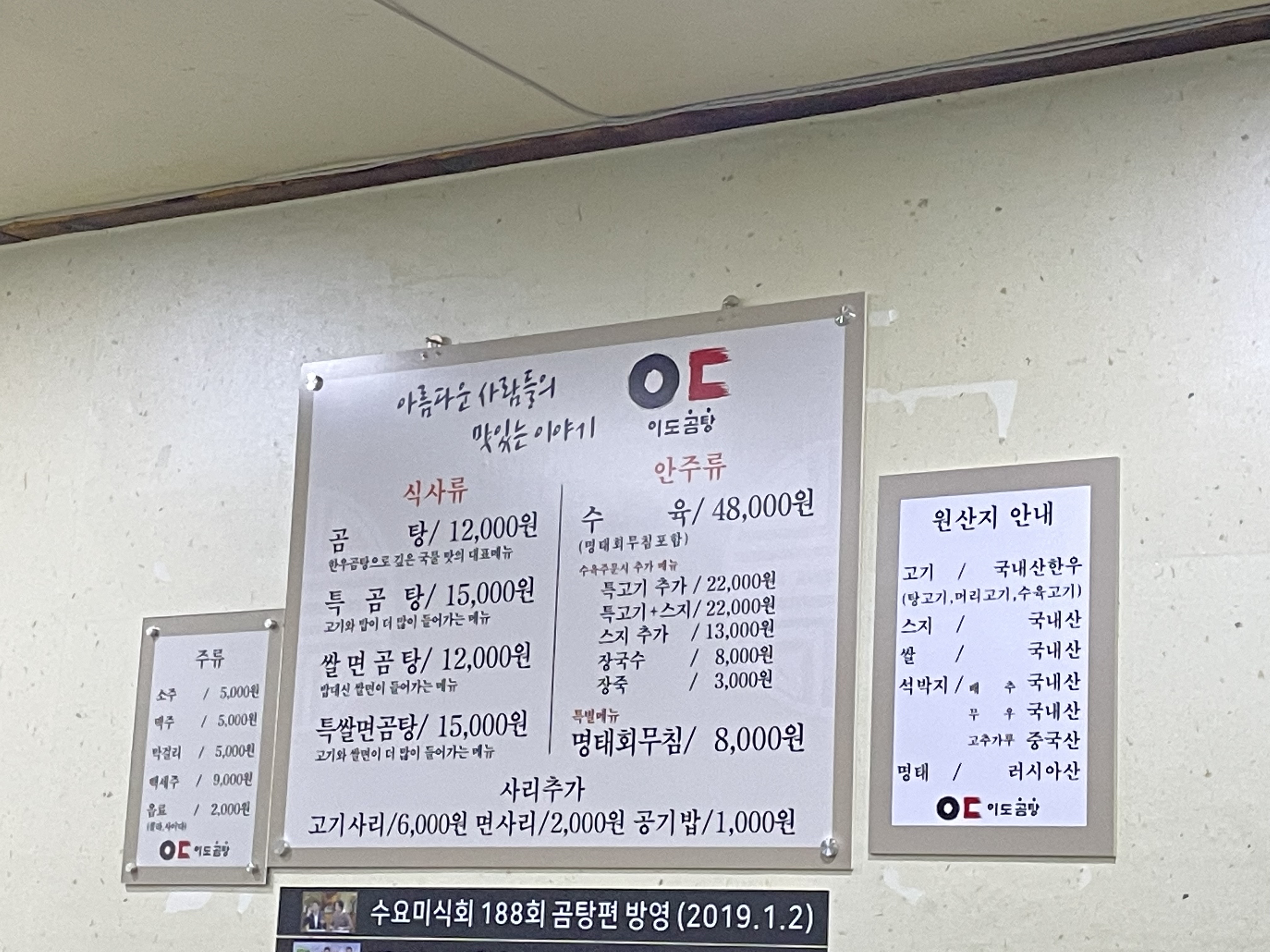 여기 이도곰탕은 생생정보통과 수요미식회에 나와서 소개될 정도로 유명한 집이라고 하더라구요.