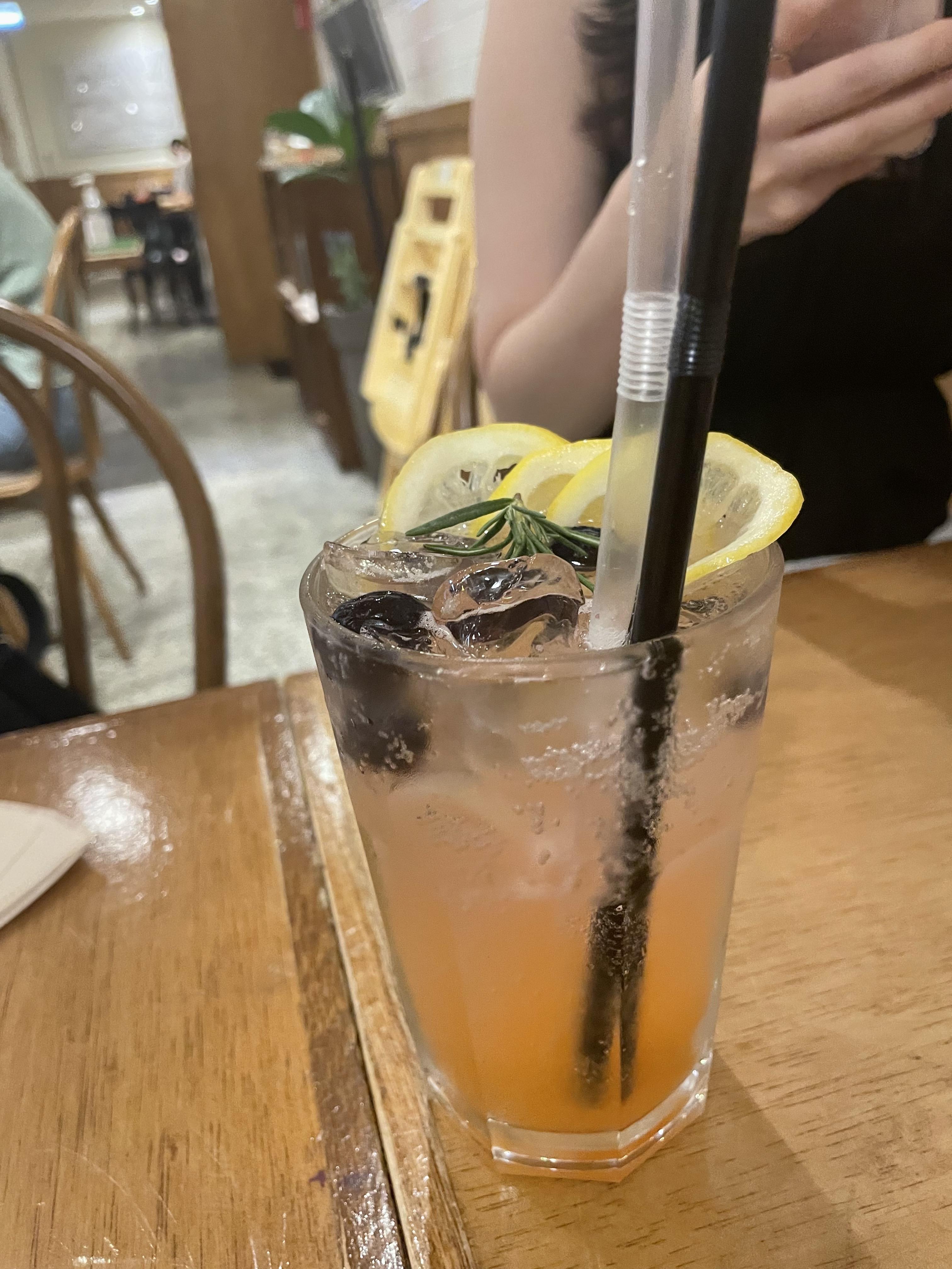 위에 귀엽게 레몬 슬라이스와 블루베리까지 얹어주져서 훨씬 더 청량감있게 마실 수 있었습니다.