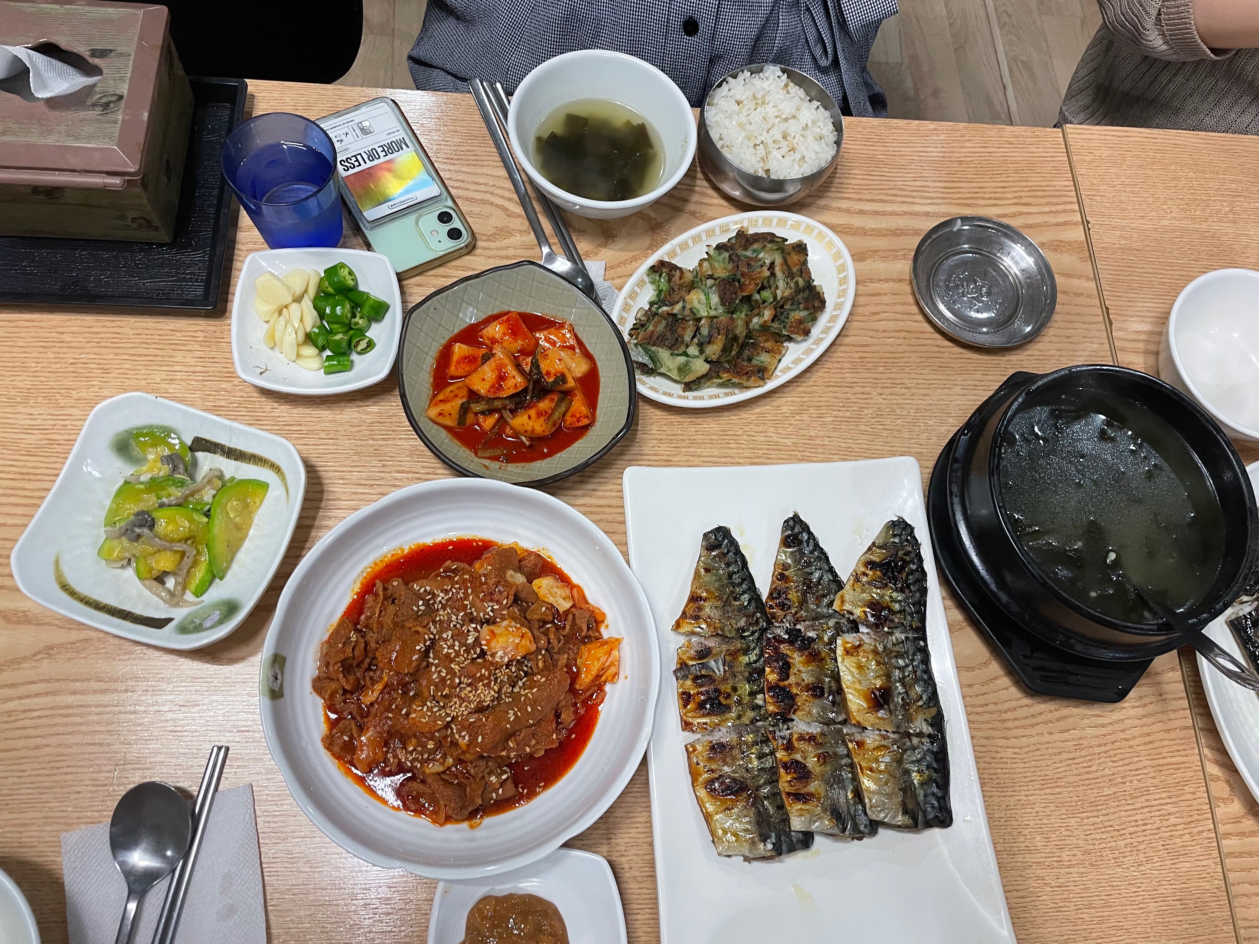여기의 메인 메뉴는 매콤 달달한 제육볶음과 신선한 고등어 구이입니다.