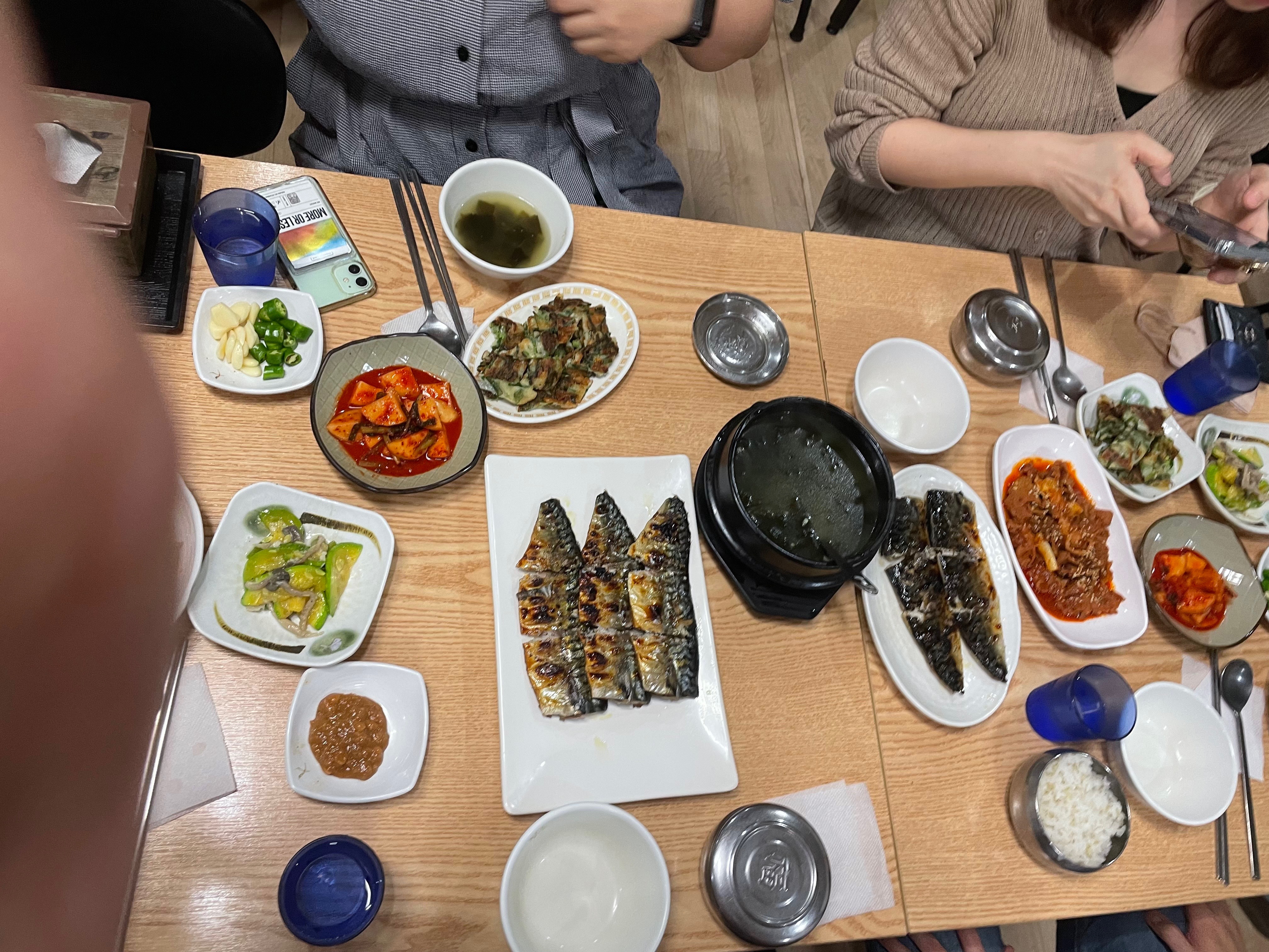 여기는 고등어구이와 제육볶음은 고정 메뉴이고, 다른 밑반찬들은 하루 하루마다 랜덤으로 나온대요!
