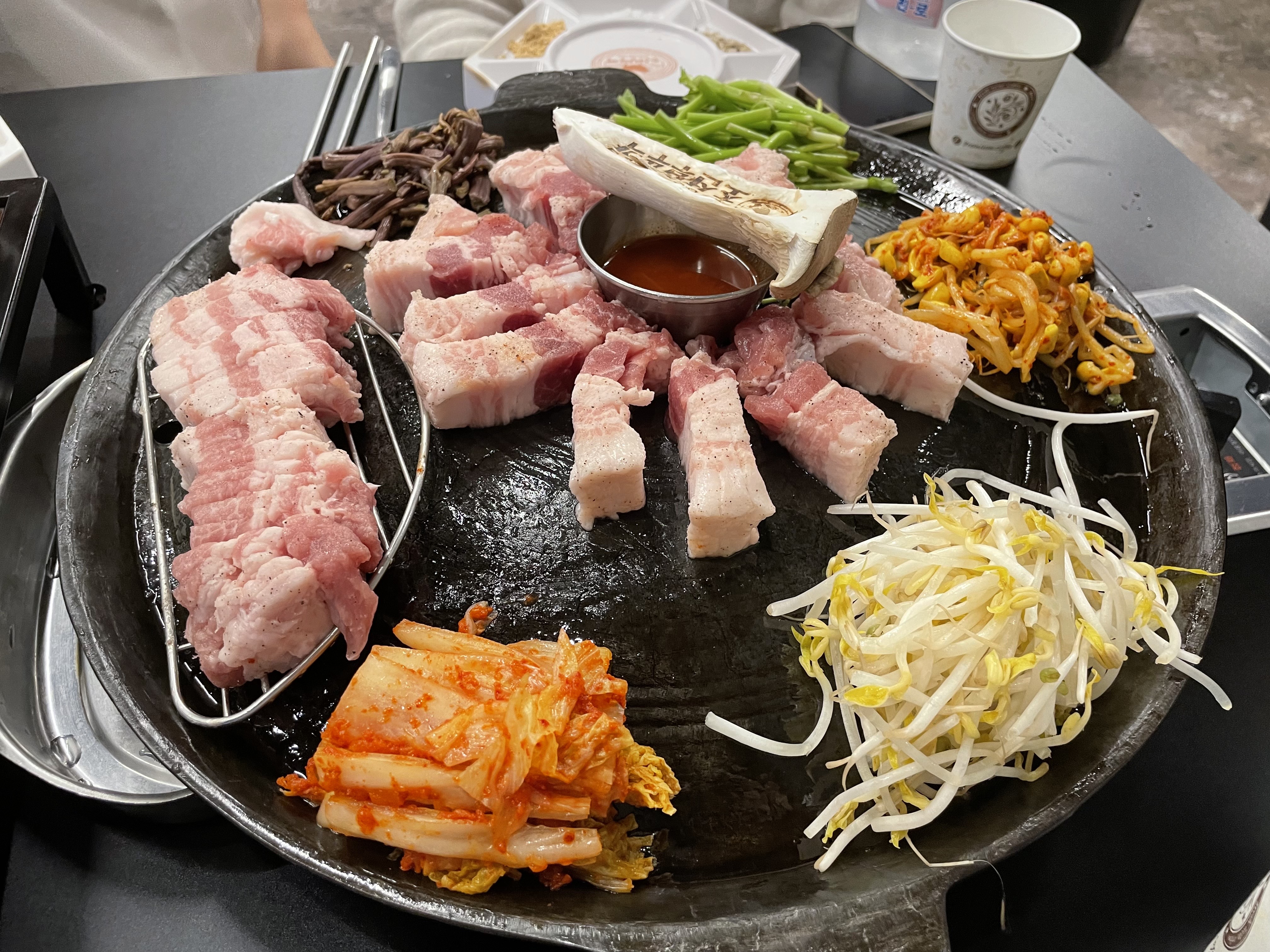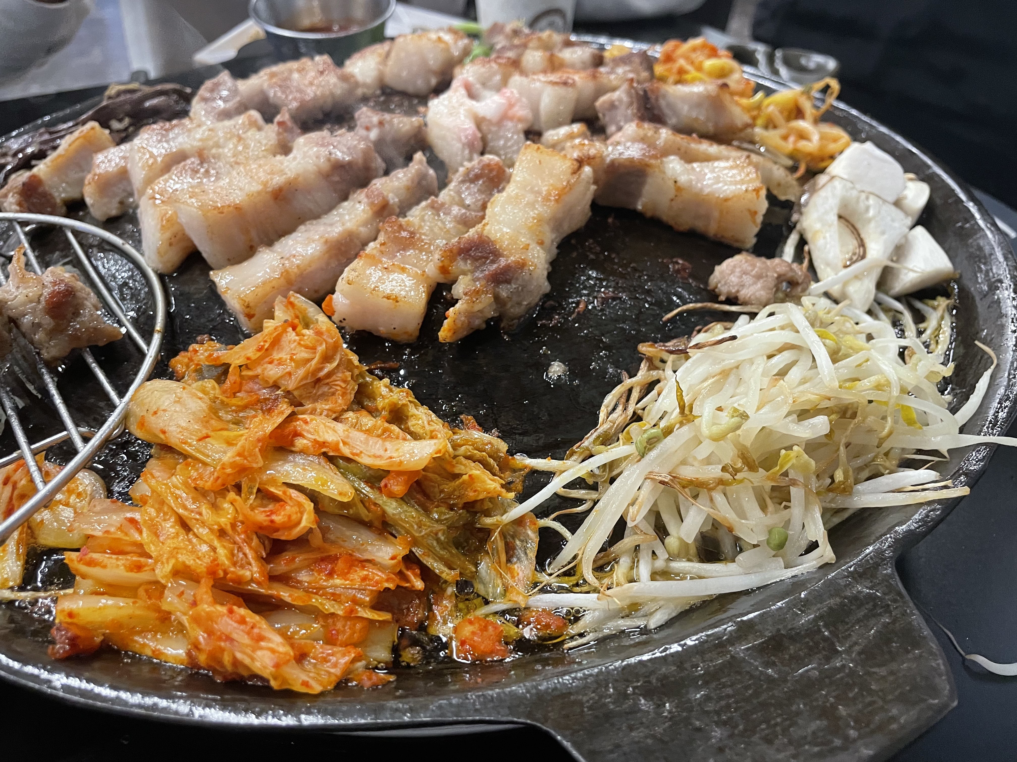 이야..솥뚜껑 삼겹살은 처음 먹어보는디요? 일단 비주얼부터 합격입니다.