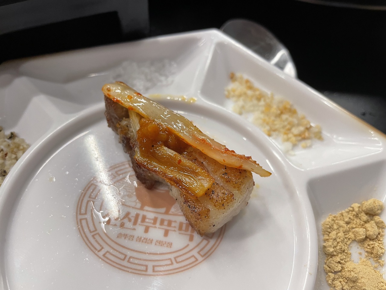 여기 삼겹살은 특히나 고기살과 비게살이 많아서 조화가 아주 좋았어요.