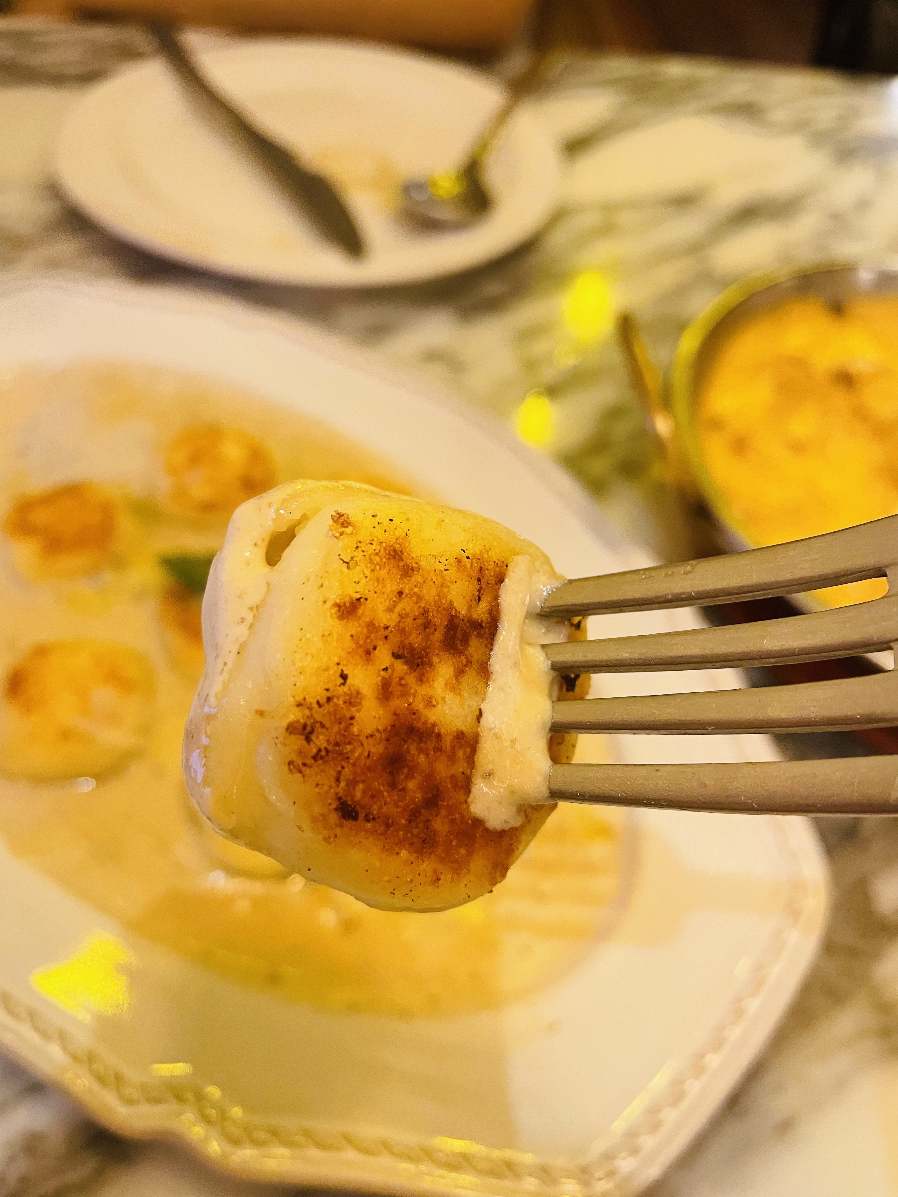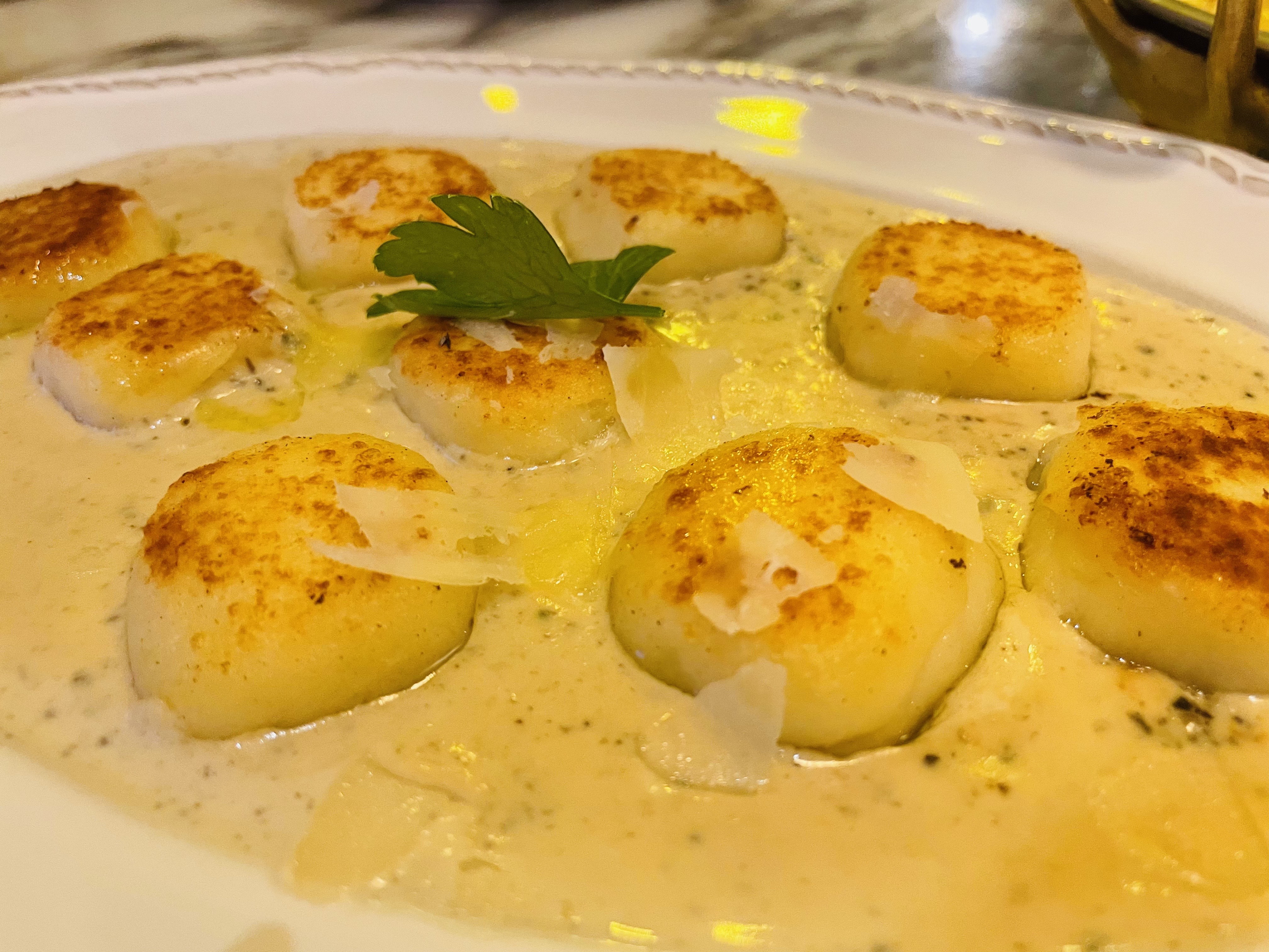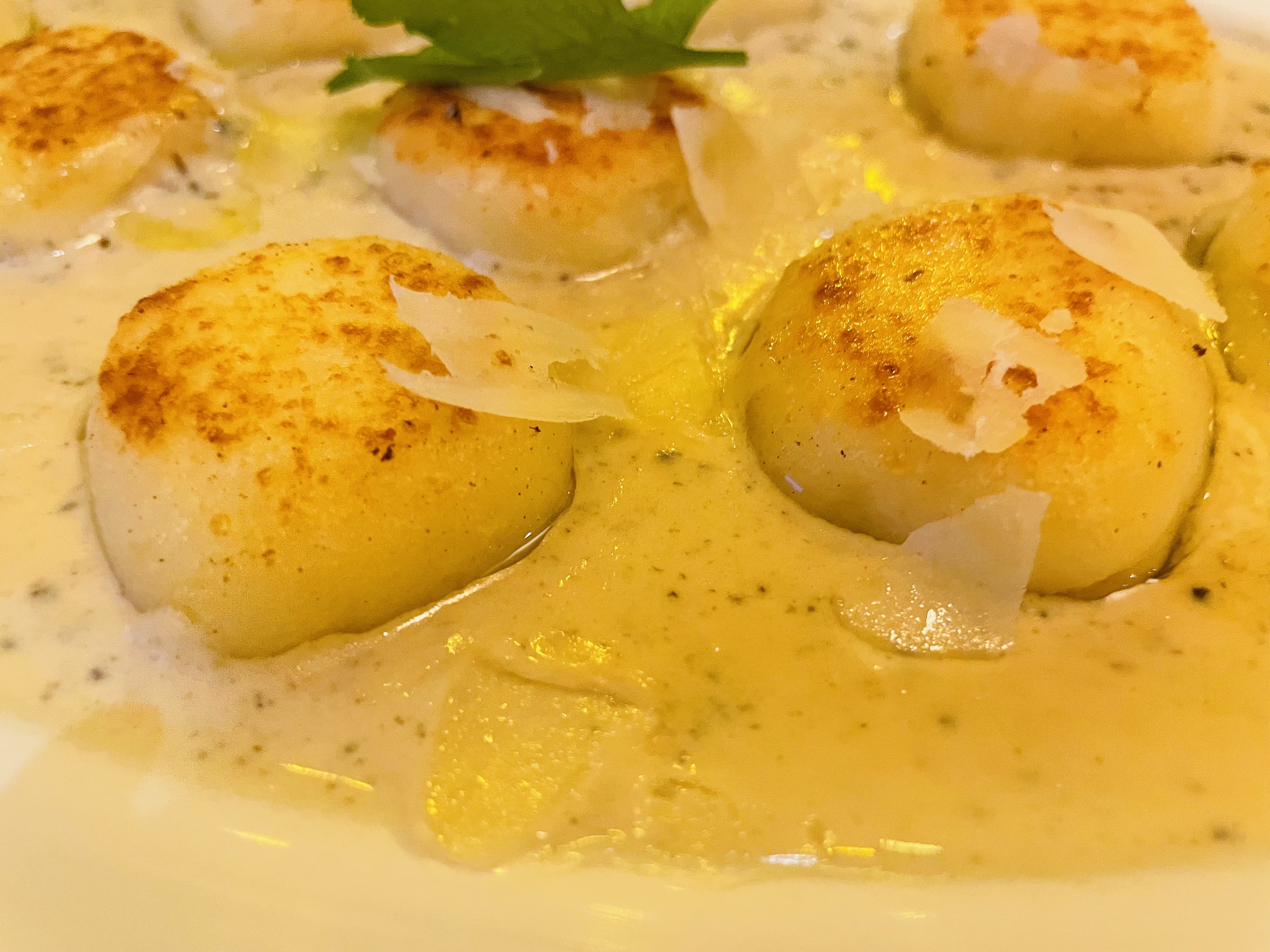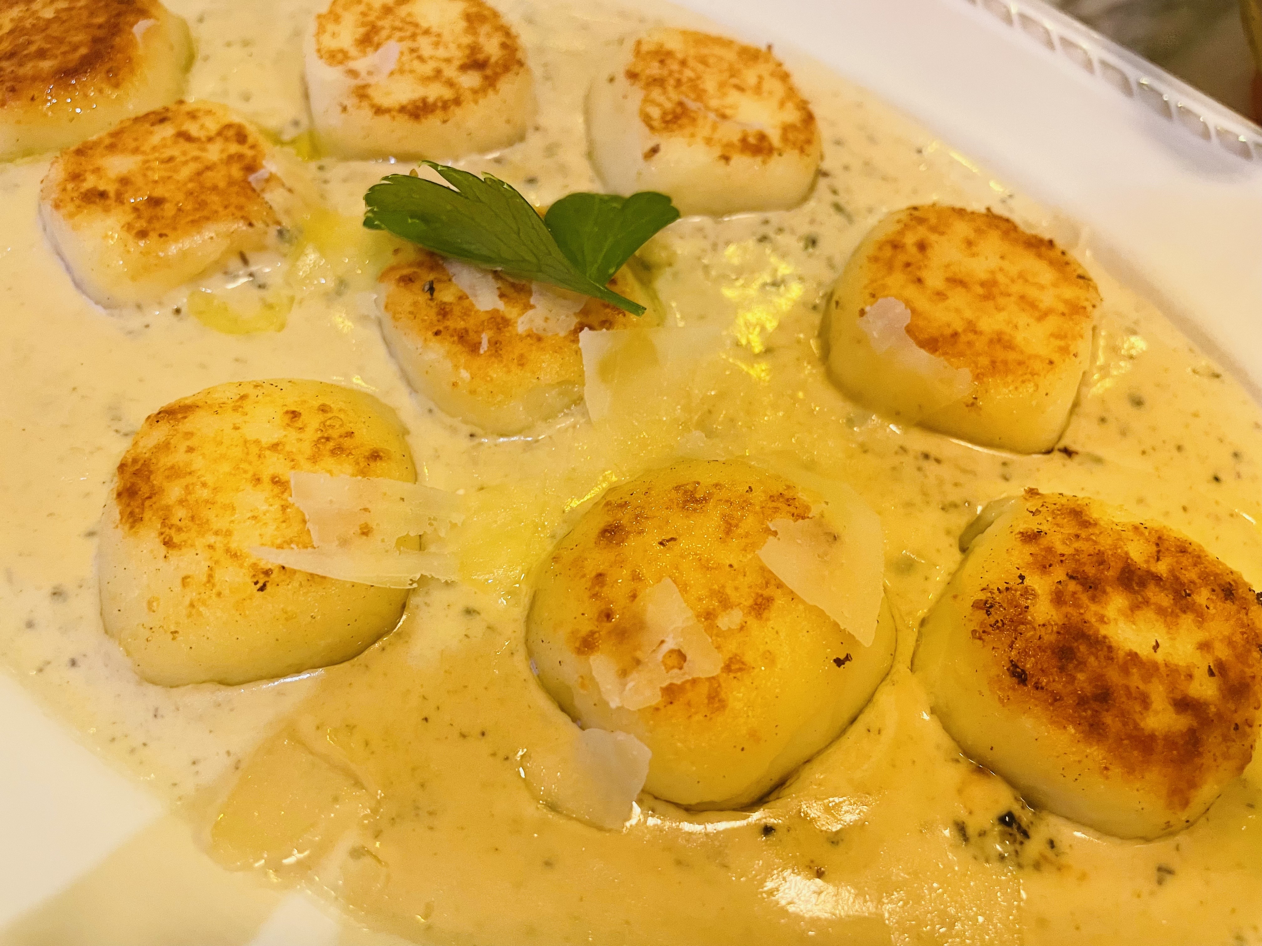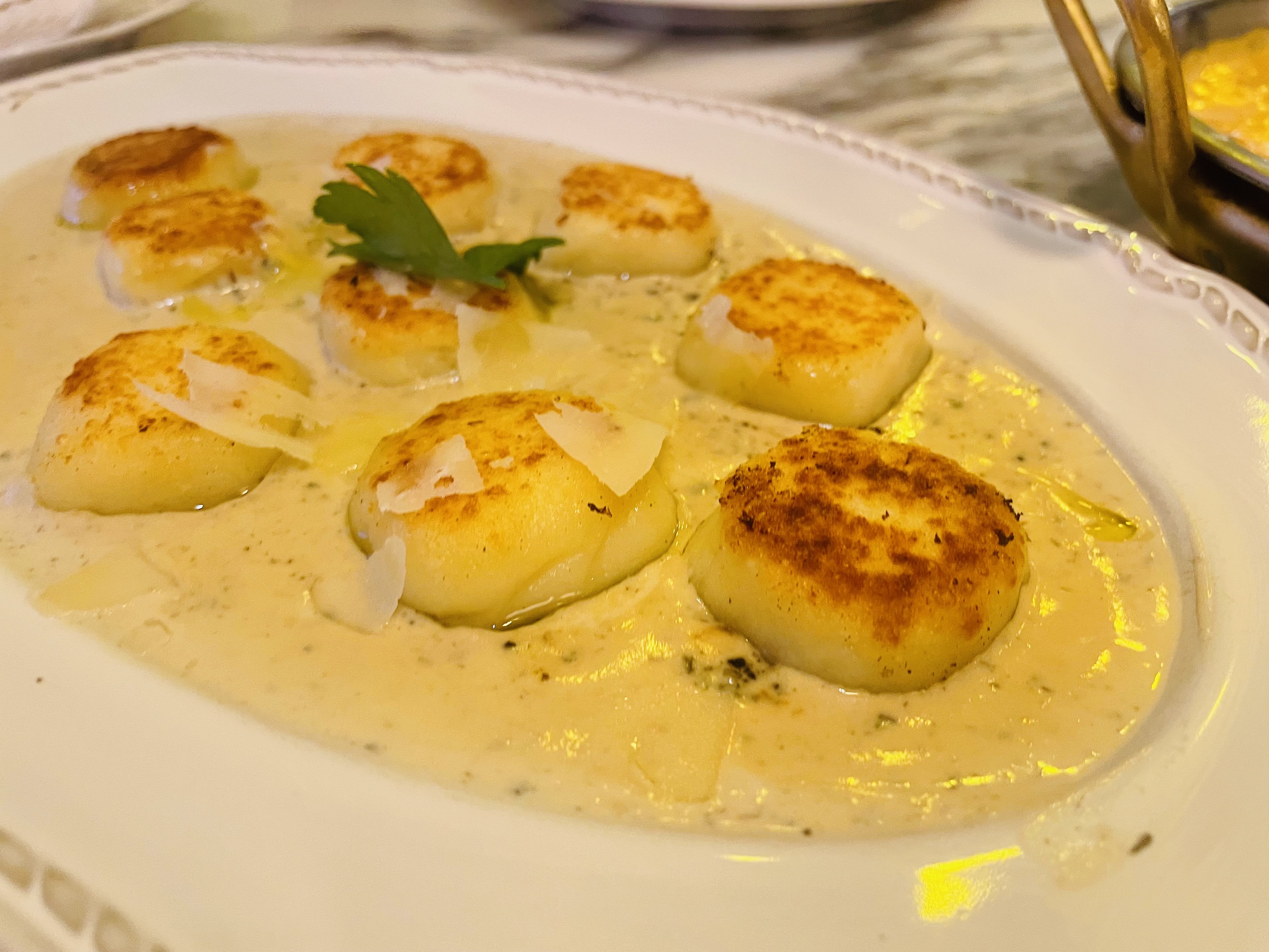 베이스로 밑에 크림 소스를 얹어주고 그 위에 뇨끼, 슬라이스된 무엇인가의 하얀 치즈가 올려져있네요.