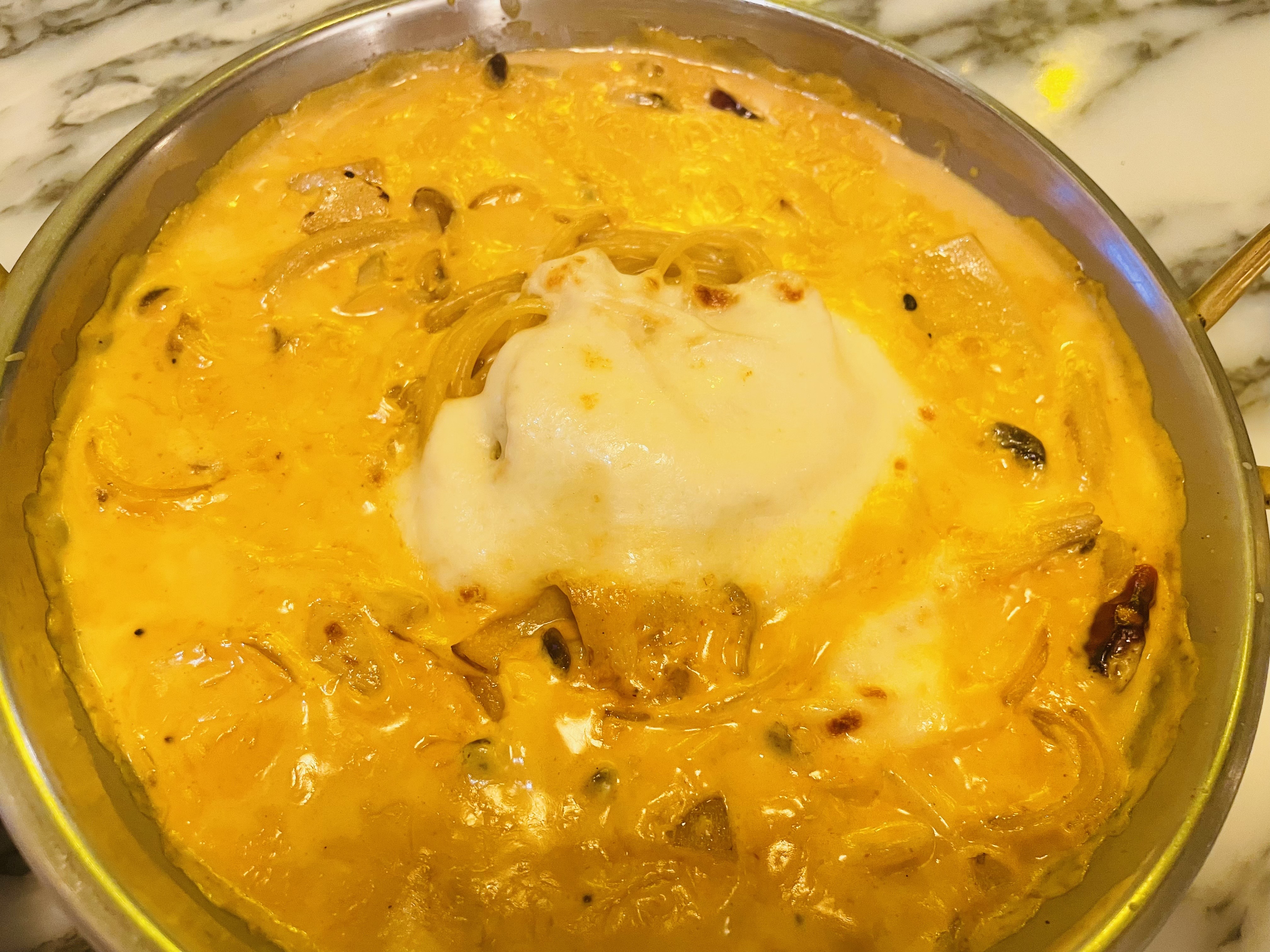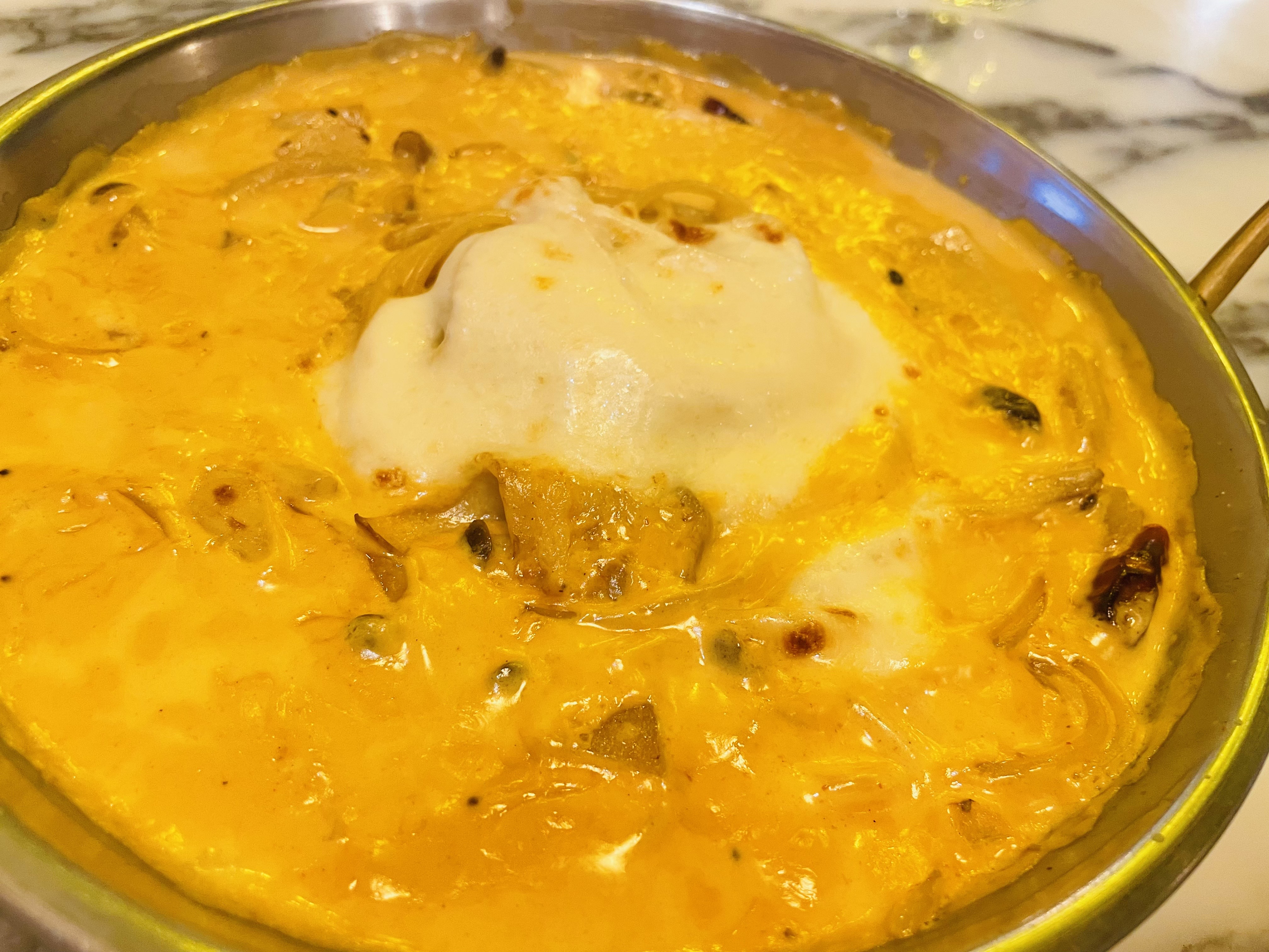 로제소스같은 느낌에 위에 하얀 치즈가 들어간 게 포인트인데요.