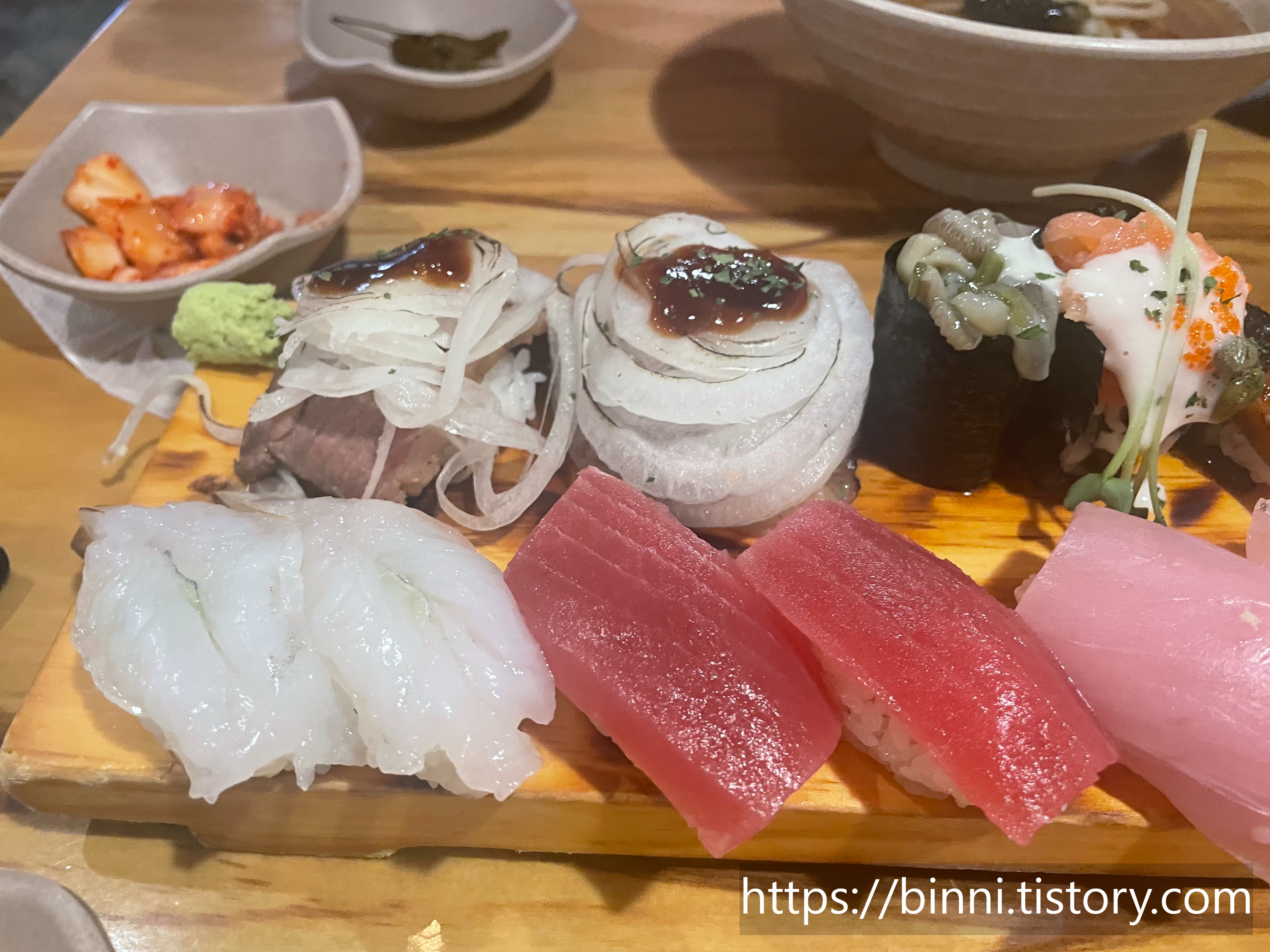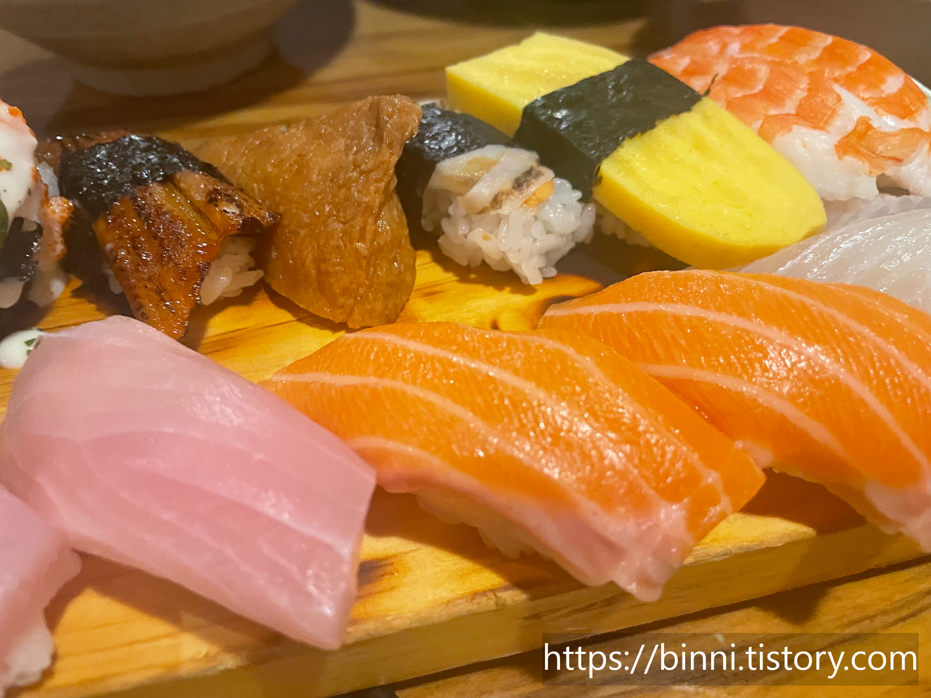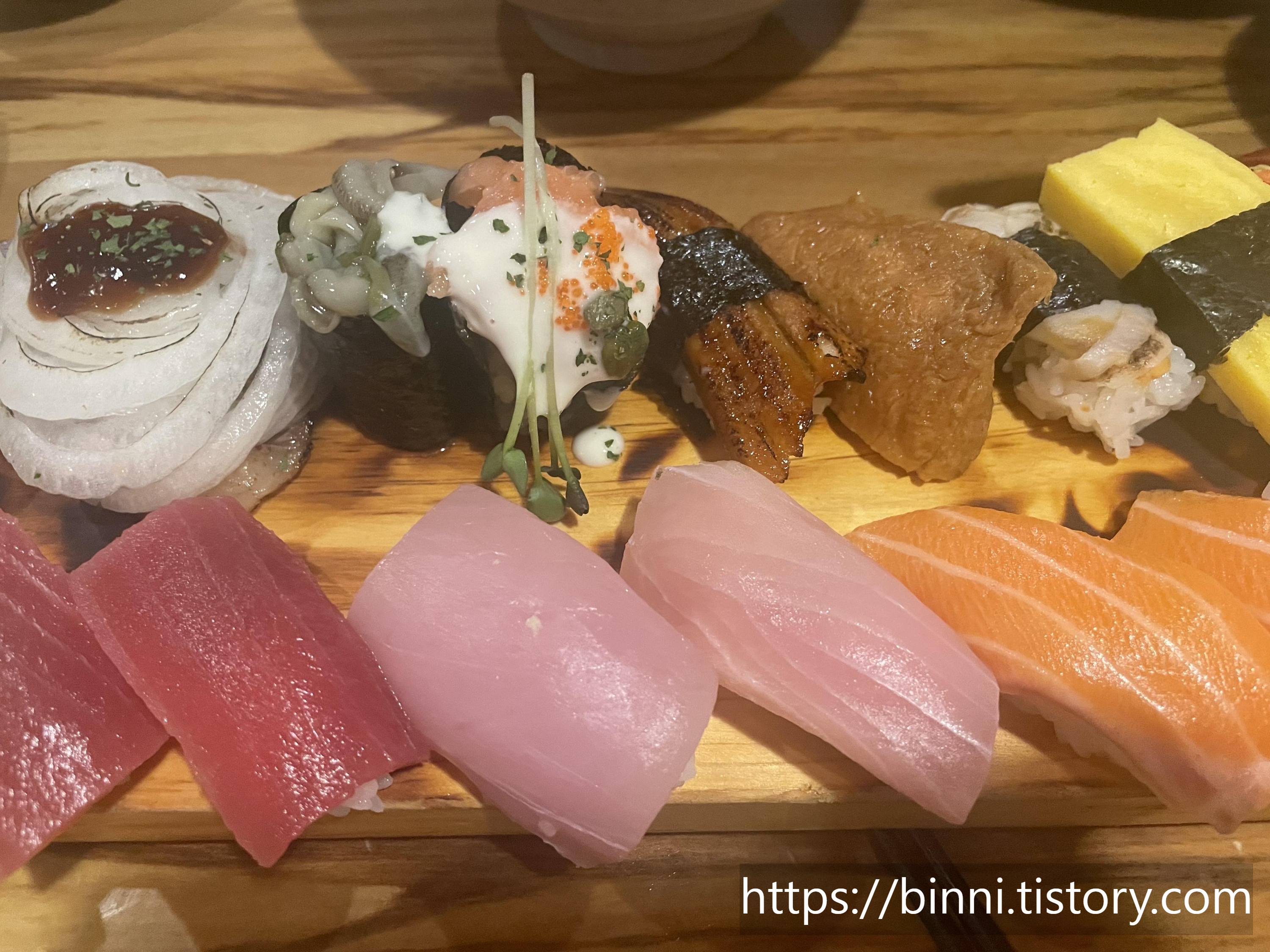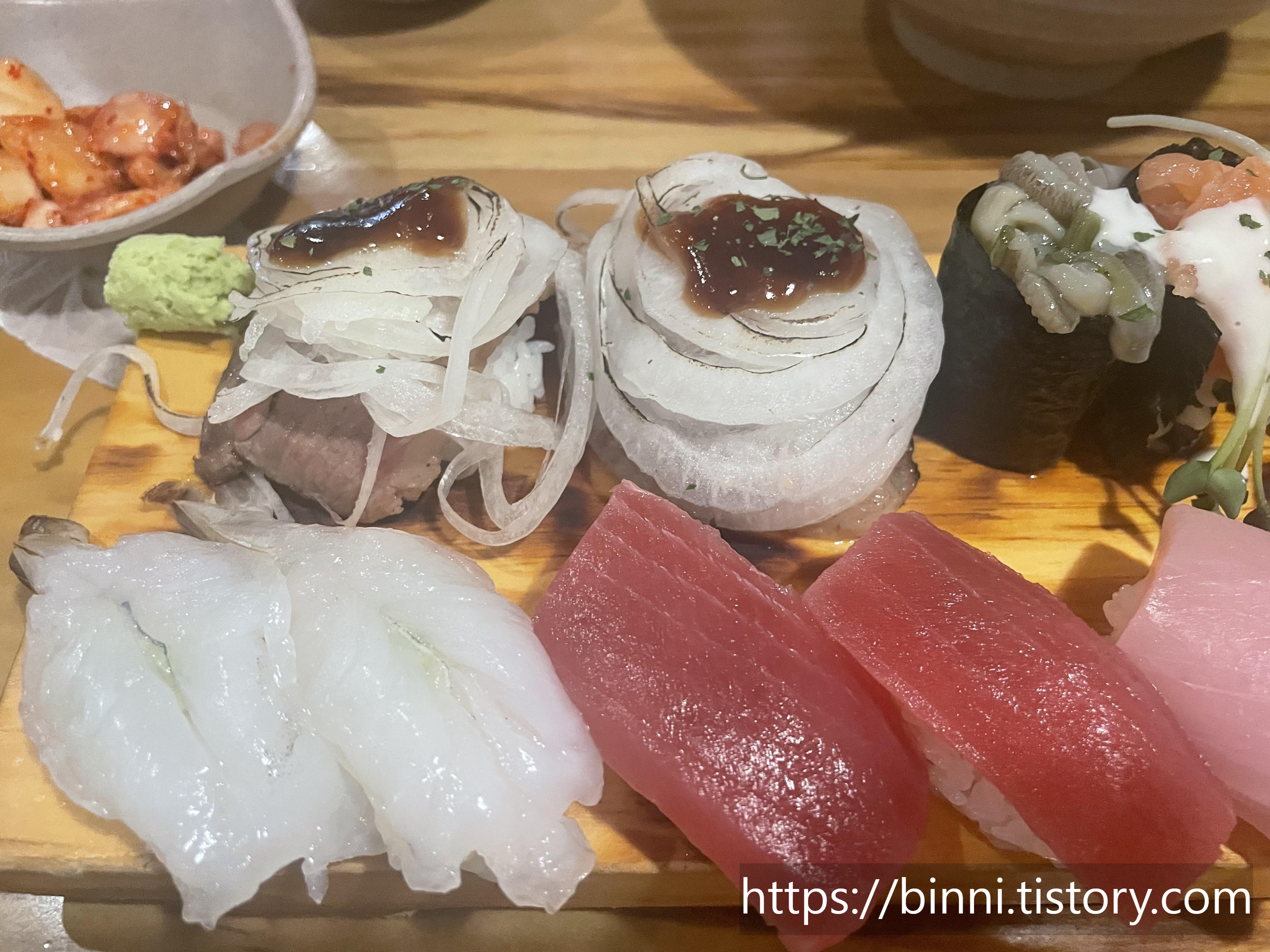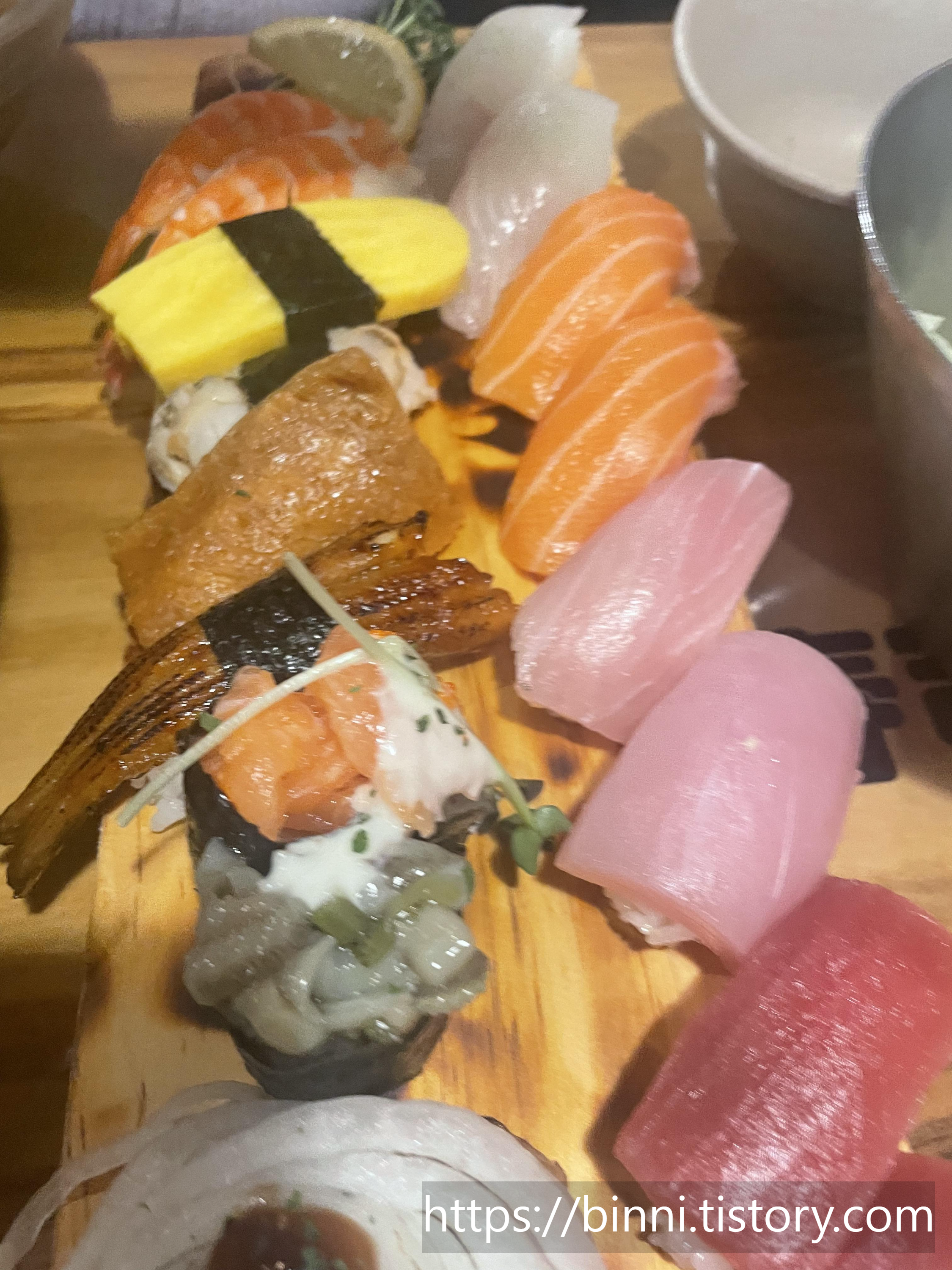 근데 나는 흠...아직 흰살 스시는 부담스러운지 오히려 너무 두꺼운 회가 부담스러웠다.