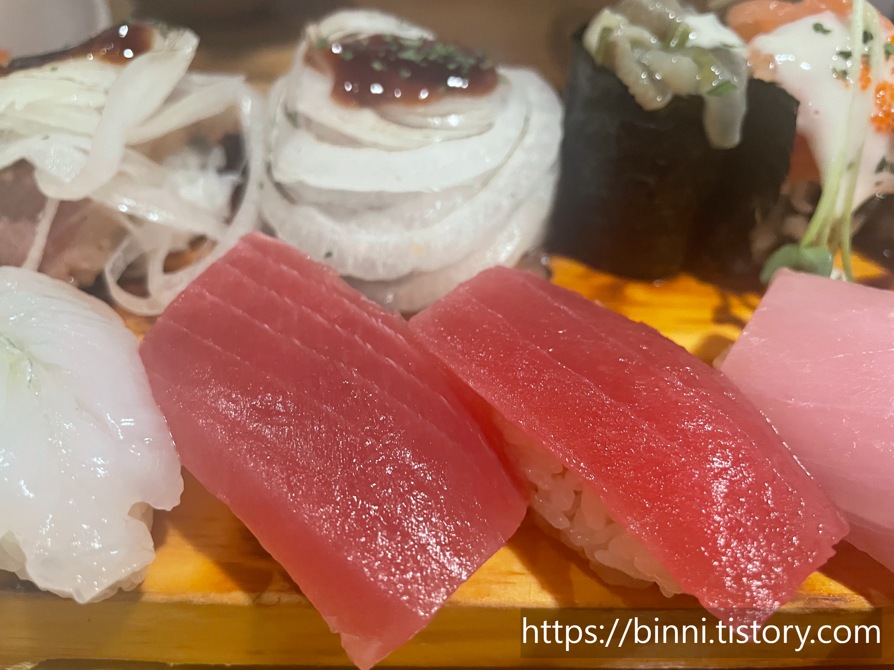 참치 빛깔이 너무 예쁘고 영롱해서 카메라 셔터를 안누를 수가 없었다..