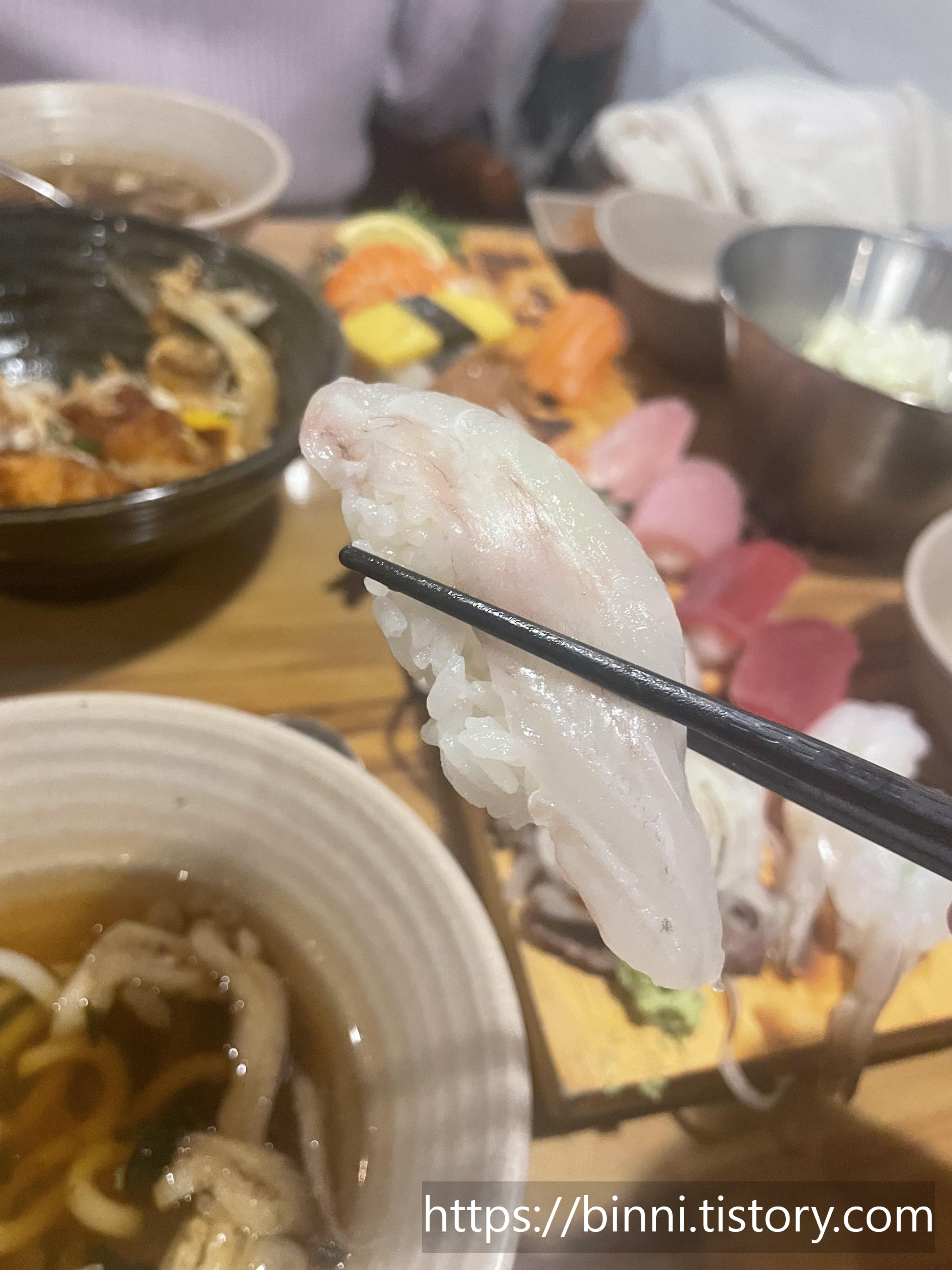 광어회인가? 흰살생선은 내가 아직 스시의 초보라 잘 먹질 못하는데 친구는 맛있다고 너무 좋아하더라.
