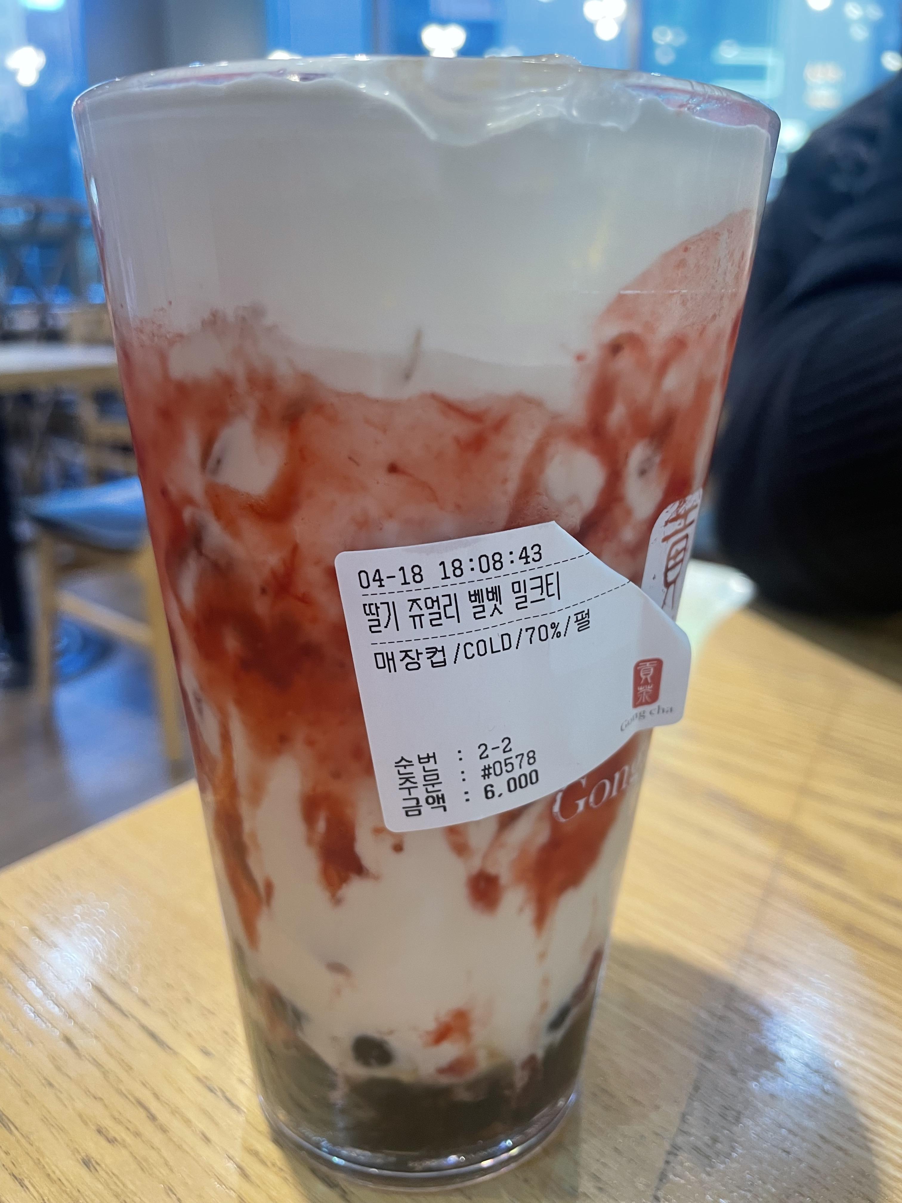 공차는 보통 타로밀크티를 즐겨먹는데, 딸기음료를 보니까 도저히 지나칠 수가 없는 비주얼이더라구요.
