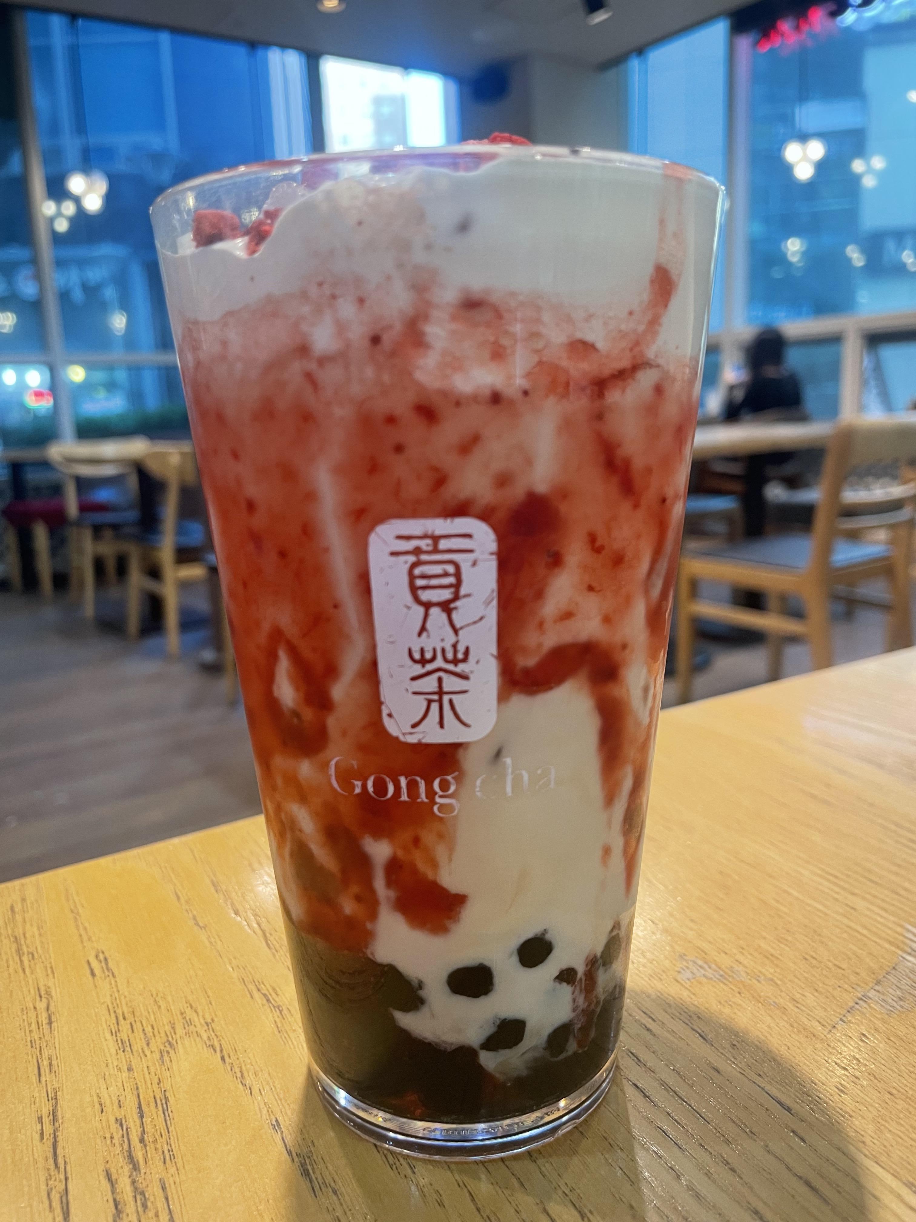 안녕하세요. 오늘은 공차의 신메뉴인 딸기 쥬얼리 벨벳 밀크티를 먹어보았습니다.
