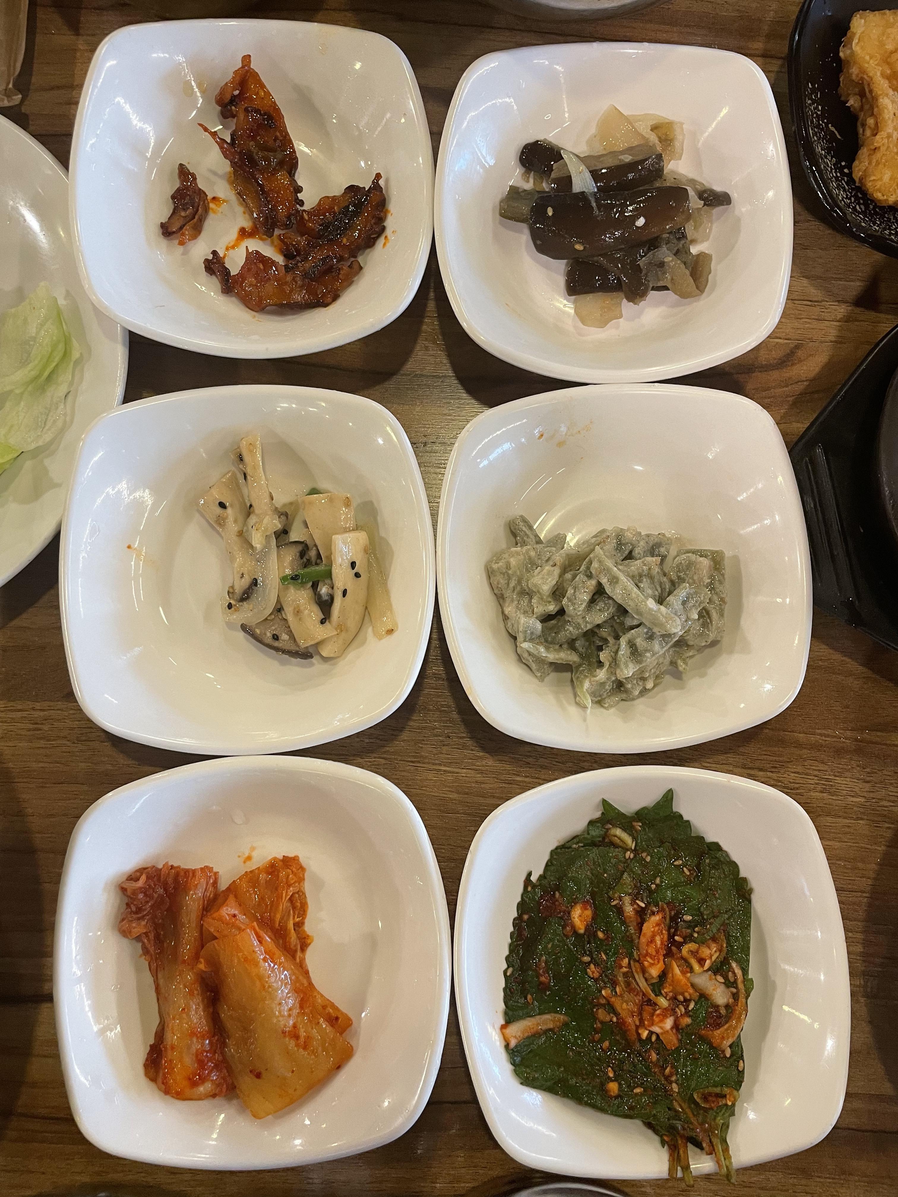 다채롭게 반찬들은 다 맛있었어요. 특히 저 맨 위에서 왼쪽에 있는 문어 쥐포같은데 진짜 맛이 좋더라구요.