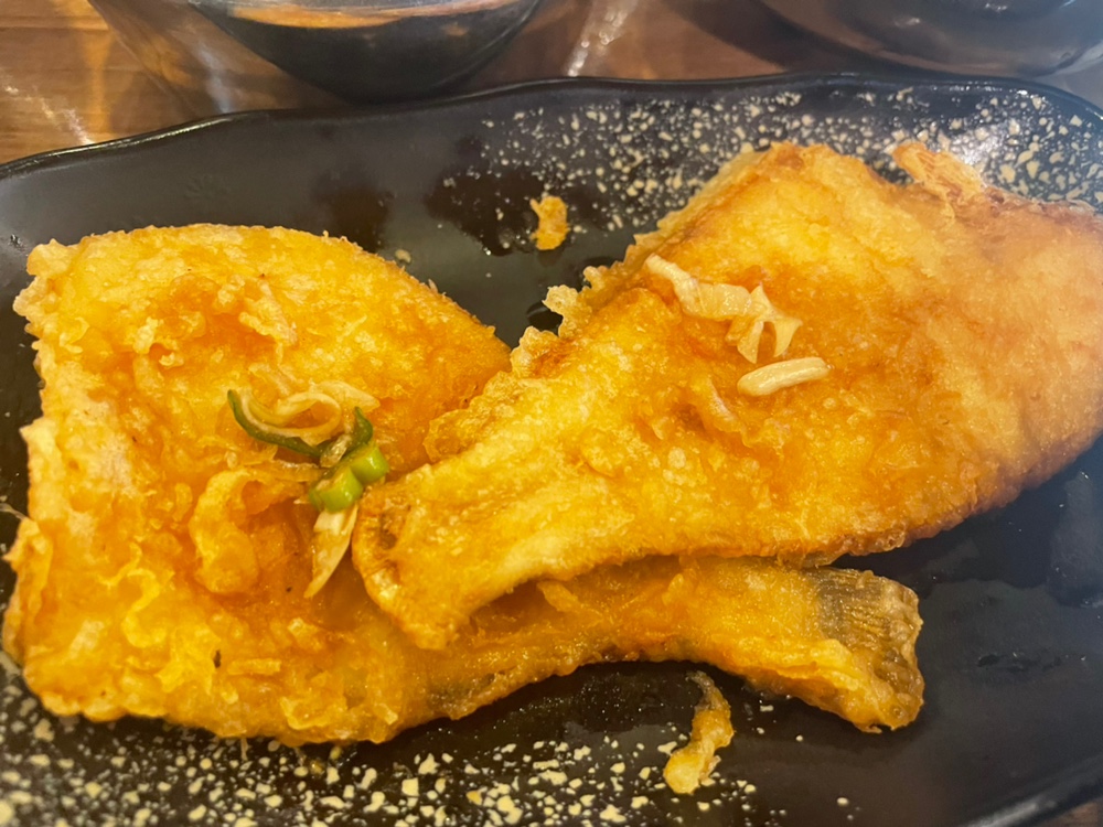 이건 가자미 생선같은데, 튀겨서 나왔어요. 저는 생선을 그렇게 좋아하는 편이 아니라서 부모님께 양보했어요.