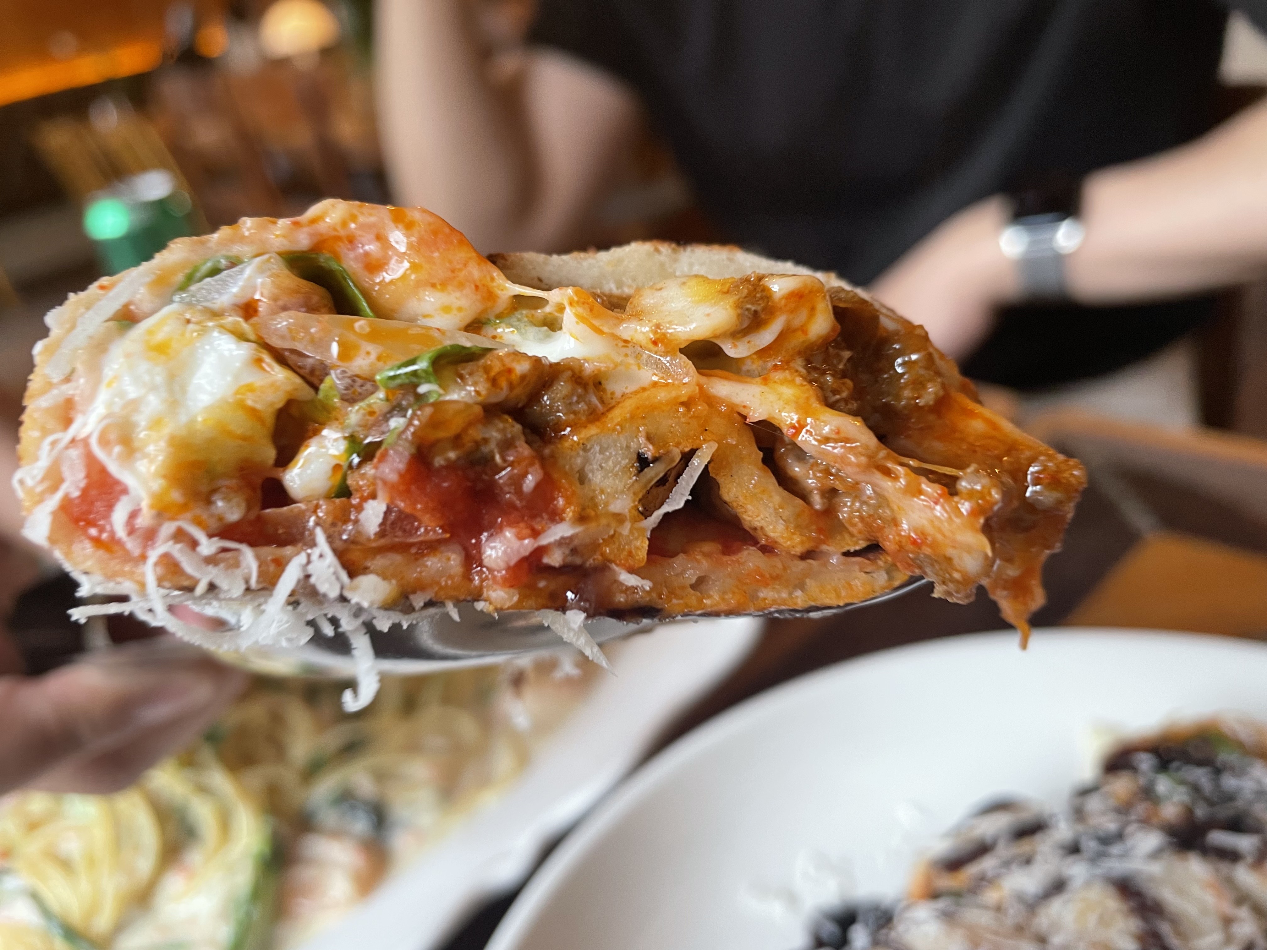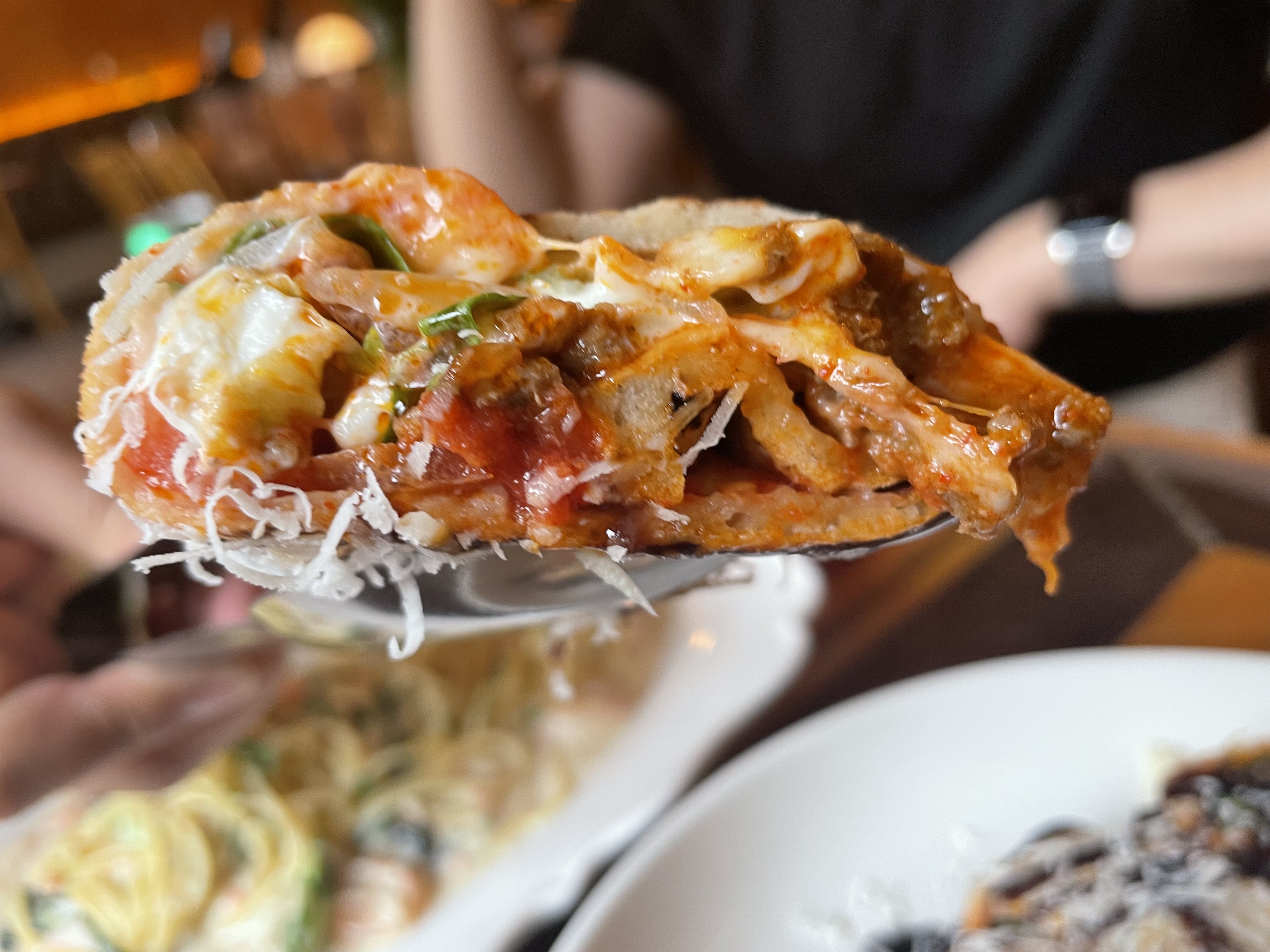 안에 고기랑 양파, 토마토가 들어있고 리코타 치즈가 들어있더라구요?!