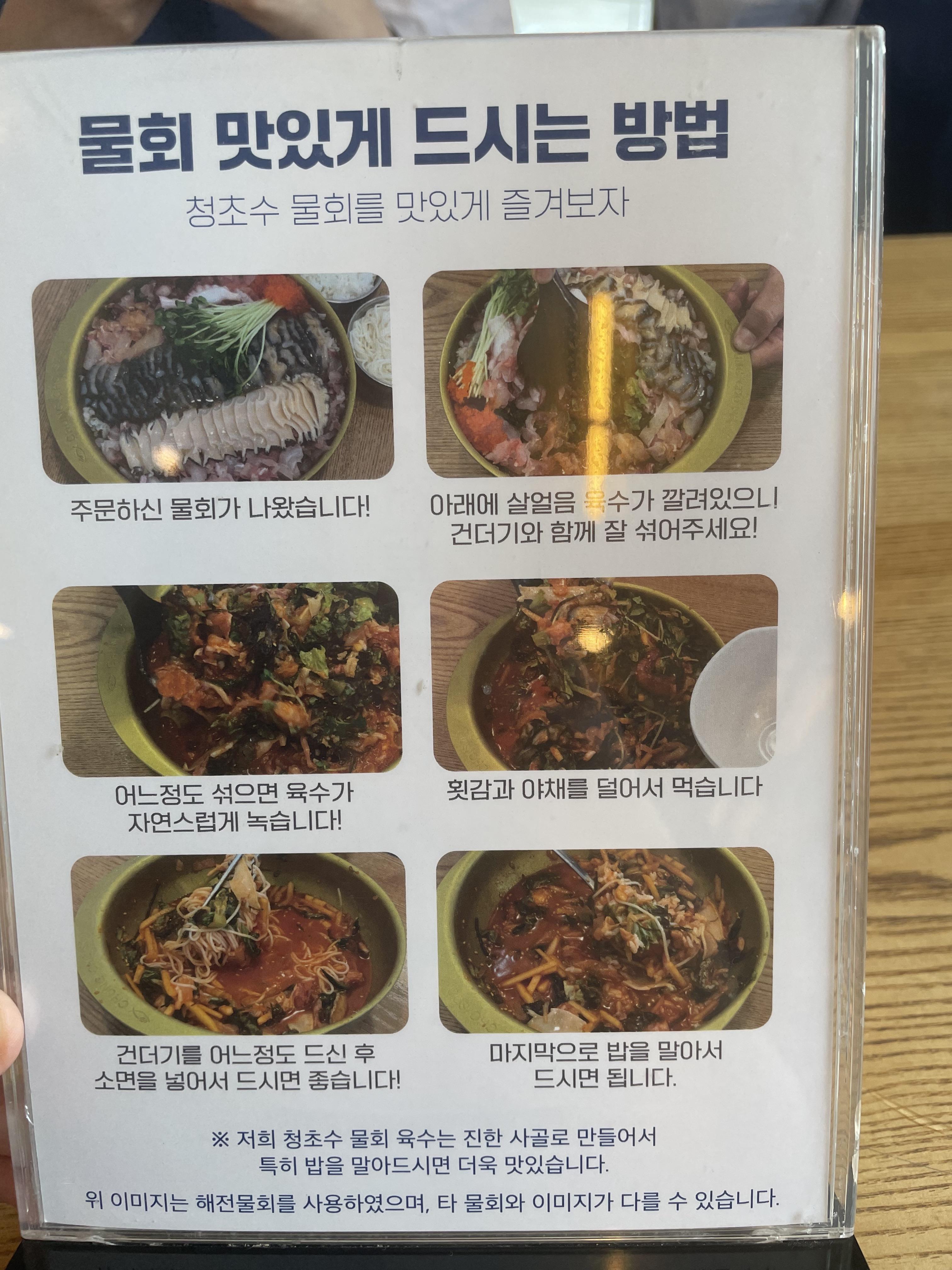 또 이렇게 친절하게 물회 맛있게 먹는 방법을 알려주시더라구요.