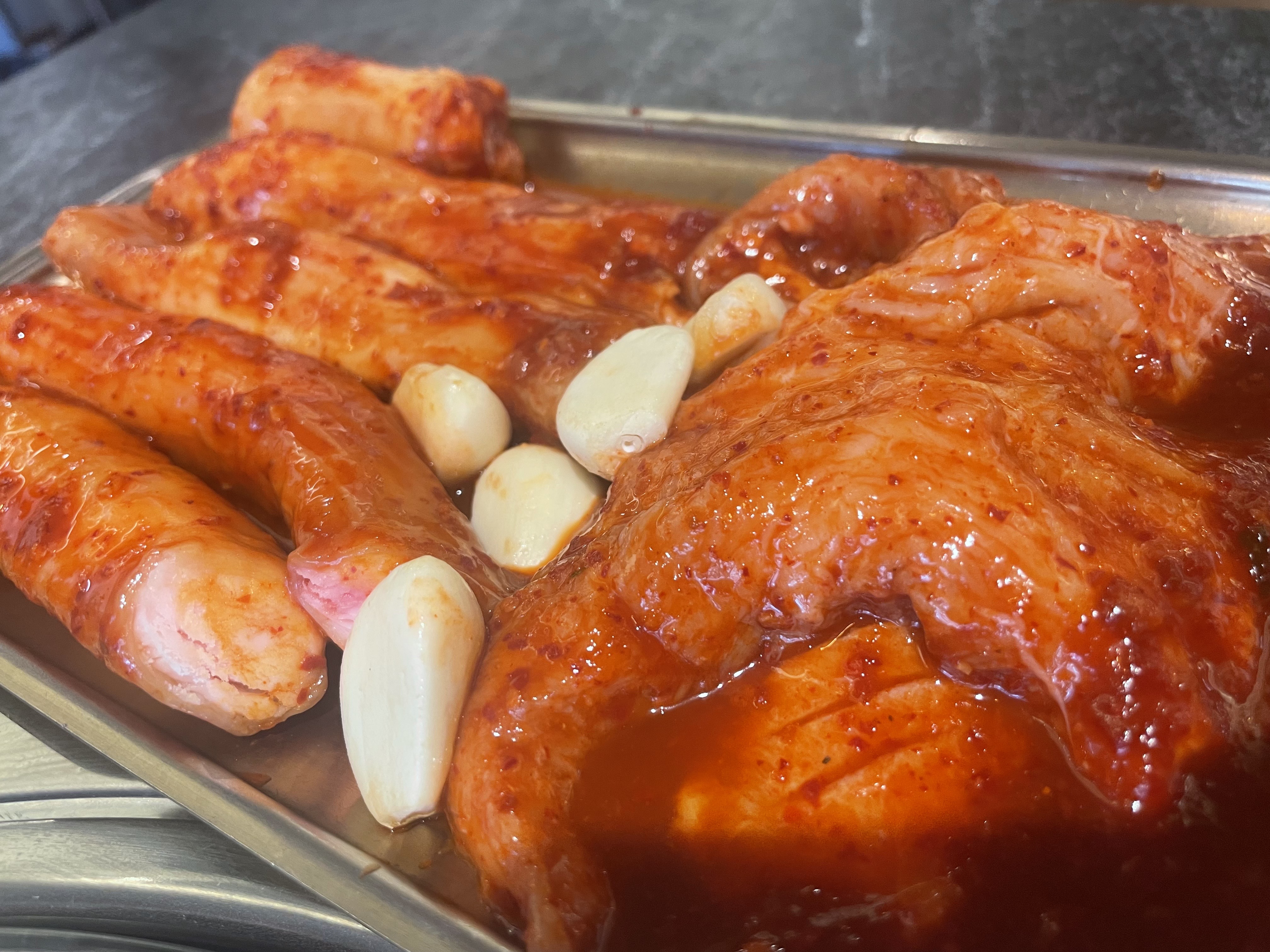 양념을 총 2가지로 주시는데, 하나는 고추장베이스 빨간 양념과 간장베이스 소스다.