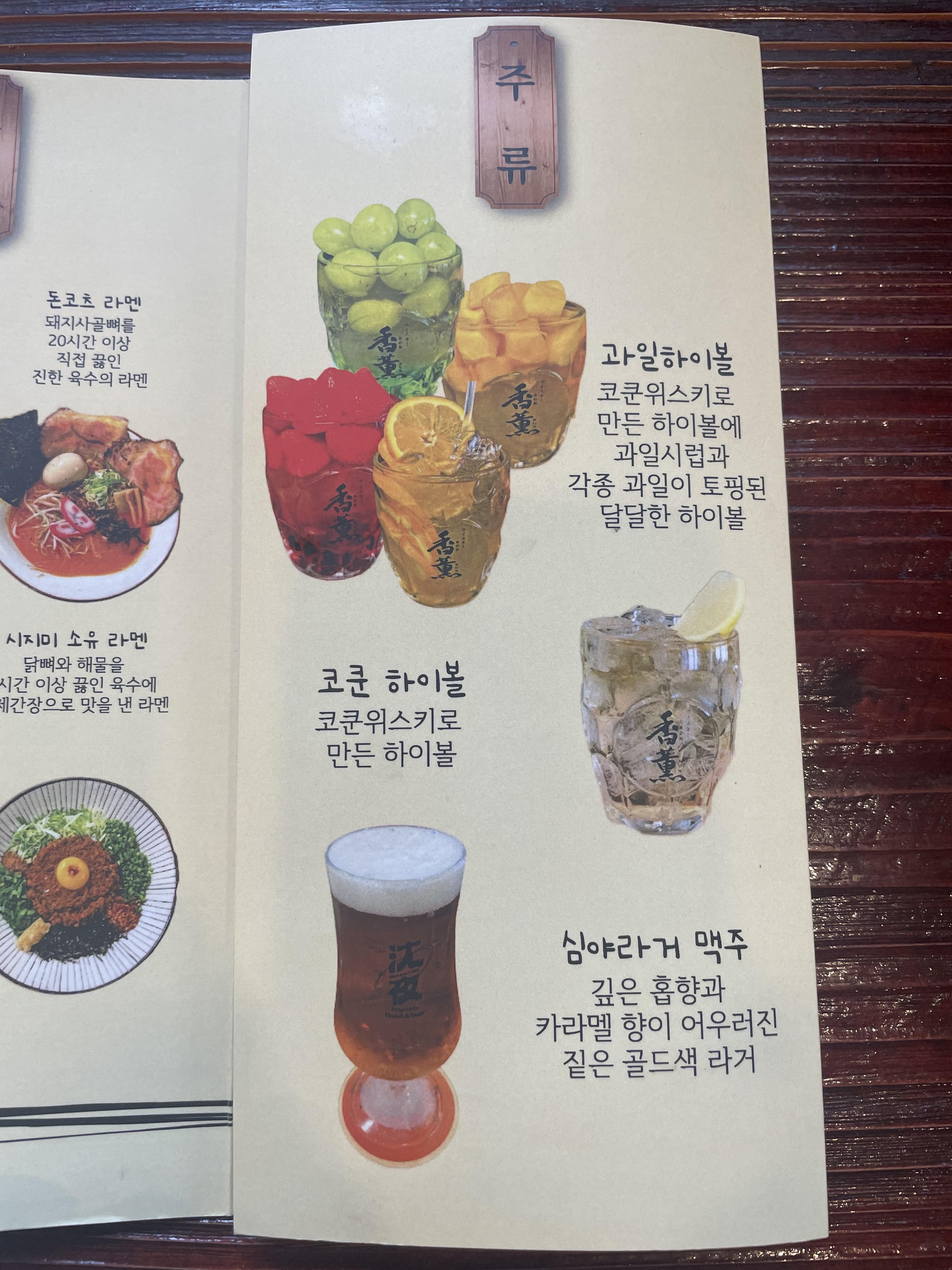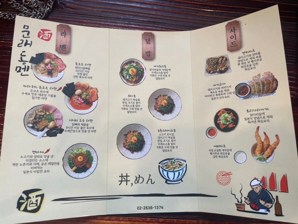 문래동멘의 메뉴판입니다. 다양한 메뉴가 있어요.