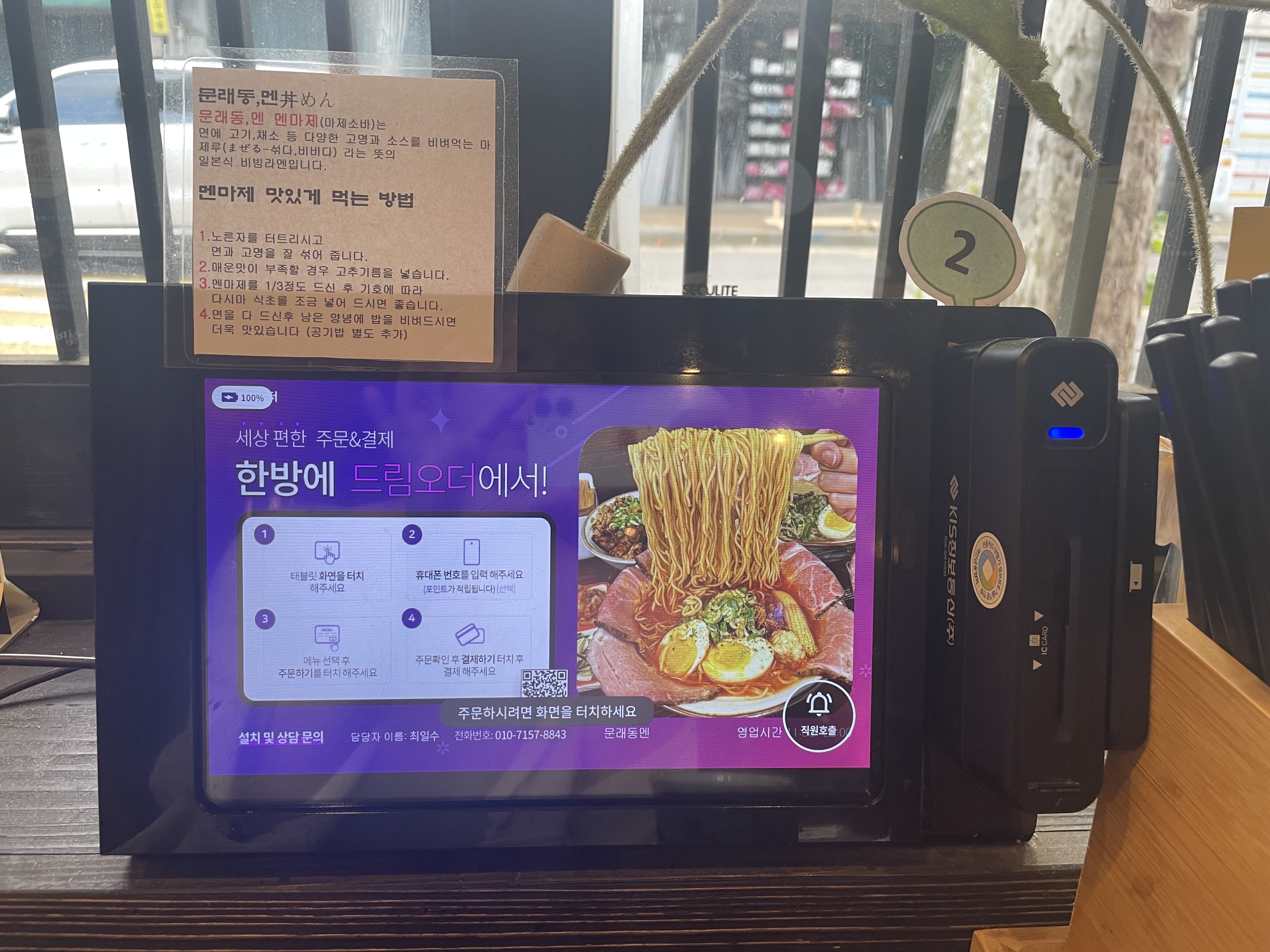 그리고 각 자리마다 미오스크가 배치되어있어서 메뉴를 주문하고 바로 카드결제를 하시면 됩니다.