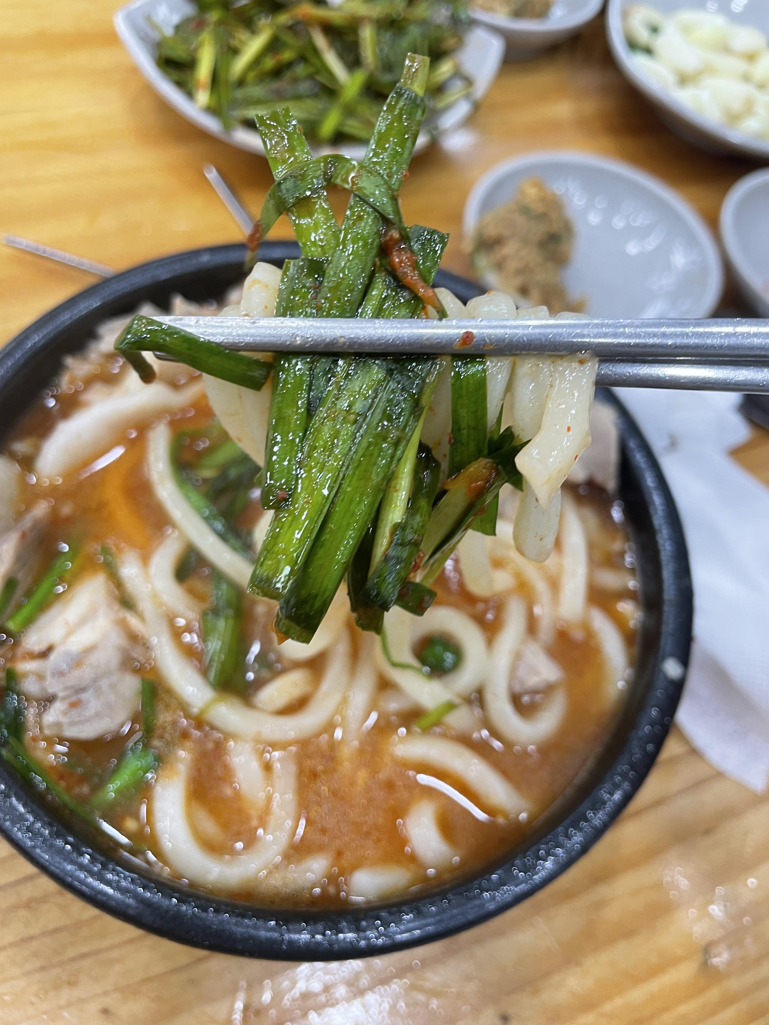 부추의 양념과 식감이 우동이랑 잘 어우러져서 맛에 풍미가 더 살아나요.