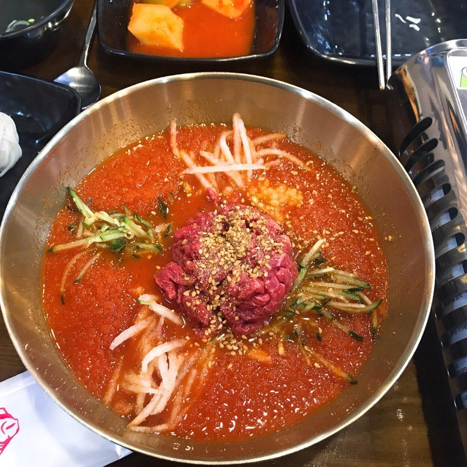 새콤한 맛 그 자체 었다. 한우는 질기지 않고 굉장히 부드럽게 입 안에서 사르르 녹는 맛이었고, 오이와 달달한 배가 한우 물회의 맛을 한층 더 청량감 있게 질을 높여주는 맛이었다. 그런데, 처음엔 육수 맛이 새콤달콤한 것이 굉장히 맛도 좋고 맵지도 않았는데 점점 먹을수록 매운맛이 올라와서 나도 모르게 물을 찾게 되는 맛이었다.